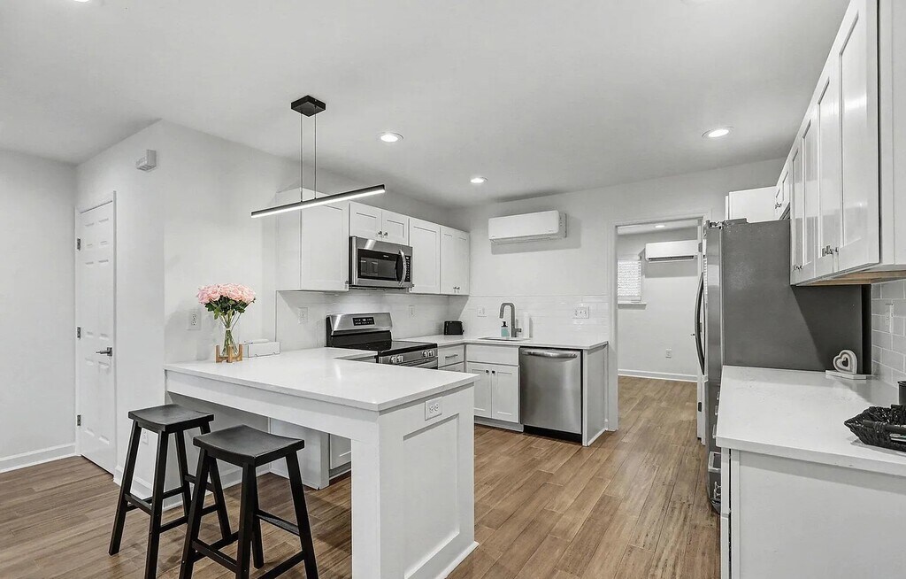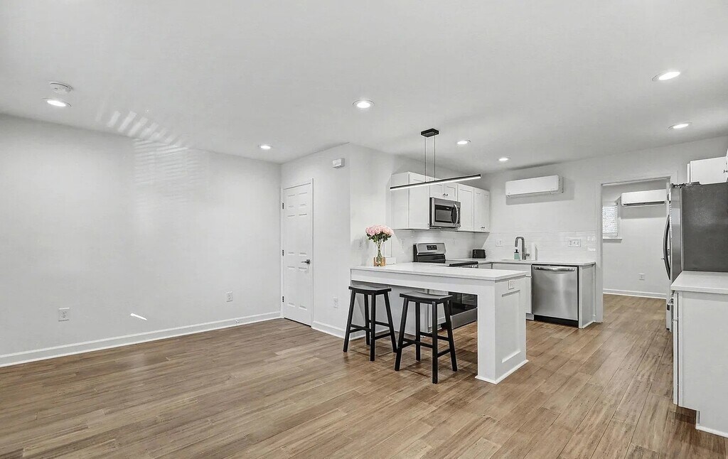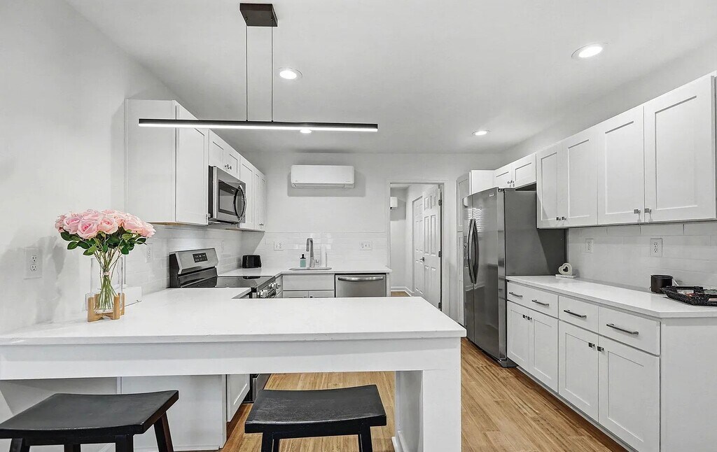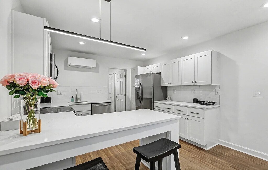 An exceptional Durham community set to redefine home ownership for a wider audience. Originally developed as condominiums in the 1980's, this distinctive project has undergone a transformative journey, evolving from apartments to now reclaim its identity as a homeowners' haven. The third of six, this meticulously renovated building boasts 18 thoughtfully designed condominiums. the spacious living rooms, inviting bedrooms, and well-appointed bathrooms create a living experience that surpasses expectations. Each condo features quartz countertops, valinge flooring, contemporary tile backsplash in the kitchen, ceramic tile bathroom floors and tub surrounds, stainless steel appliances, microwave, and more.