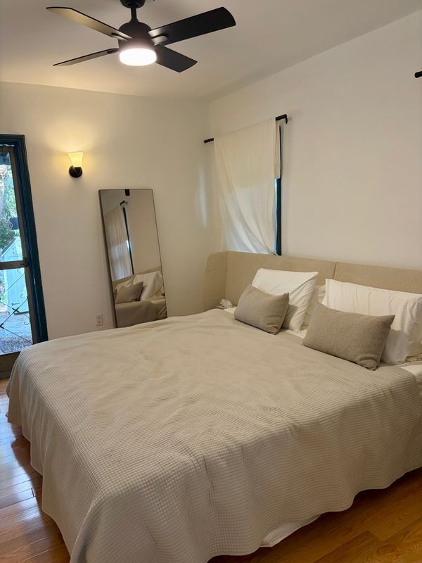 This charming Spanish-style casita is perfectly situated at the top of Montecito Heights, offering serenity while still being within minutes of Highland Park, DTLA, and Pasadena. And Ernest E. Debs Regional Park is just a short walk away, offering plenty of hiking and views of the city. The home features original built-ins, hardwood floors, and central heating and cooling controlled with a Nest thermostat, along with ceiling fans for added comfort. The eat-in kitchen has tons of storage space and brand new appliances: gas range, refrigerator/freezer, microwave, washer, and gas dryer (photos don’t show new appliances). But why spend your days inside when you can enjoy the spacious yard and patio, sitting under the sprawling Chinese Elm. Or plant your favorite veggies in the south-facing raised bed. Note: this is one of two detached homes on a shared lot. Each home has separate outdoor spaces and plenty of privacy. Schedule a viewing today and discover the calmness and charm of Montecito Heights.