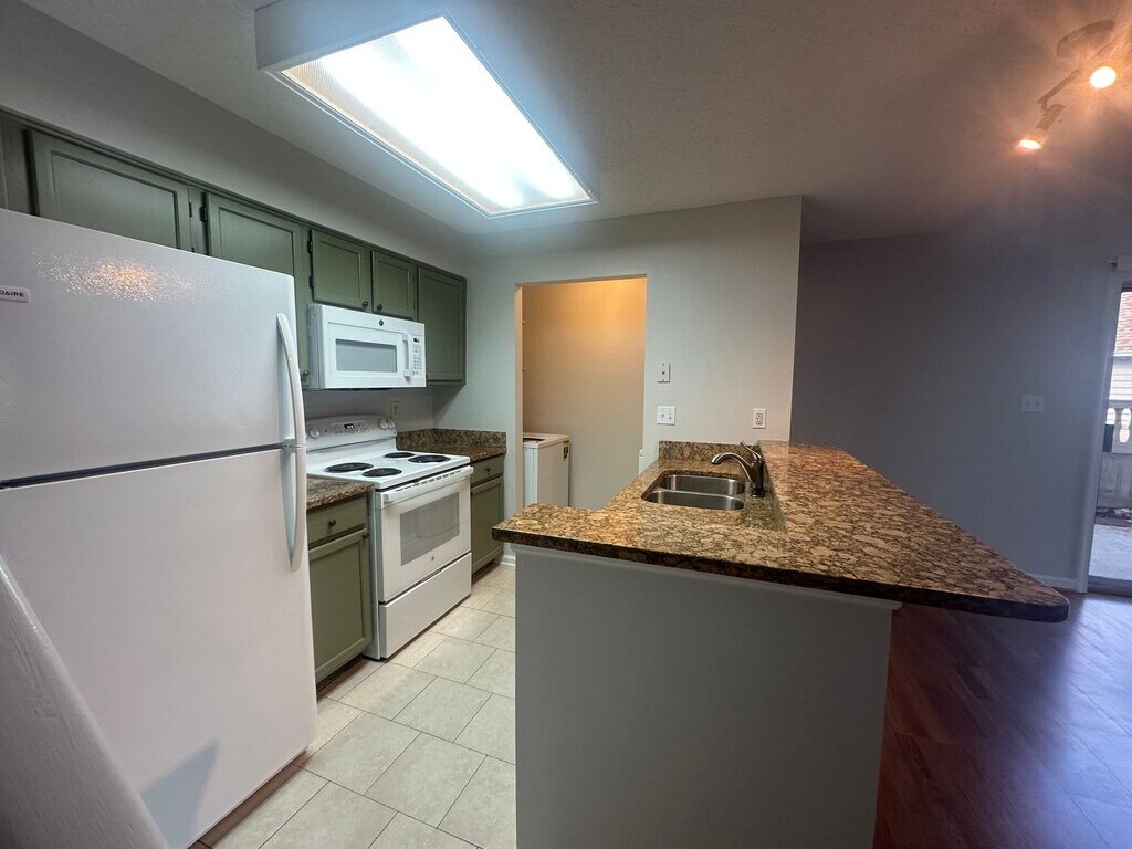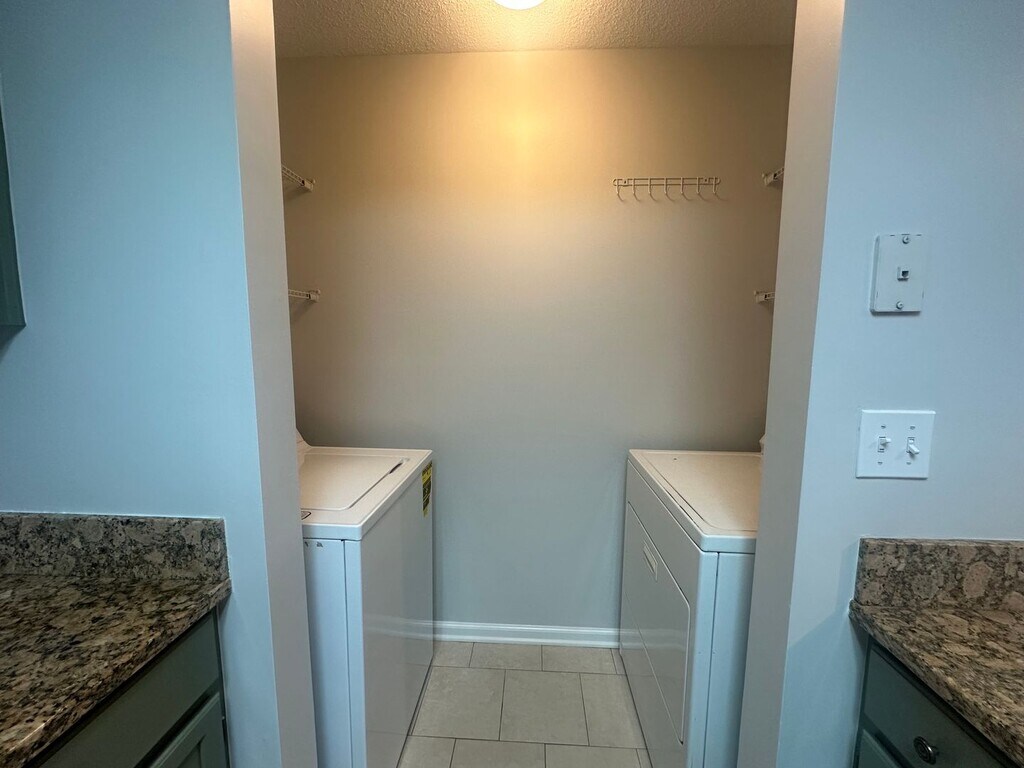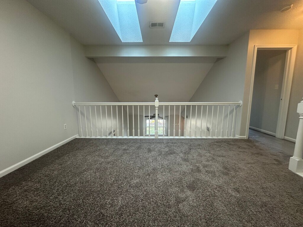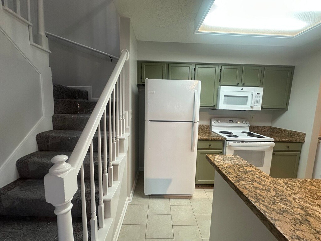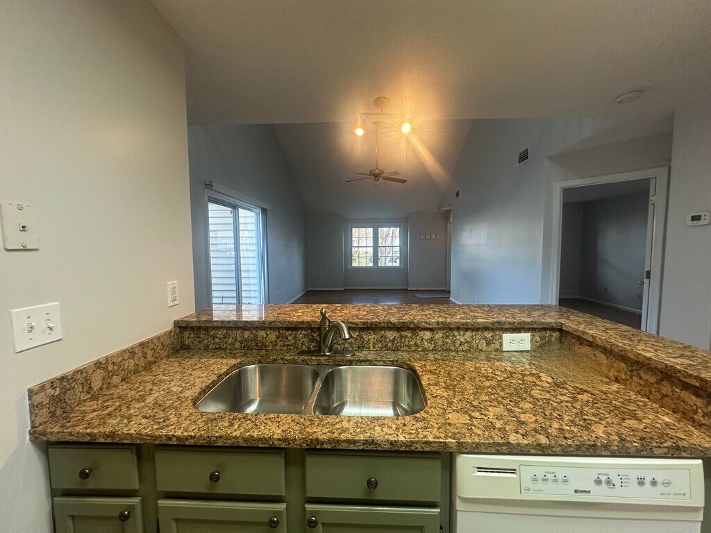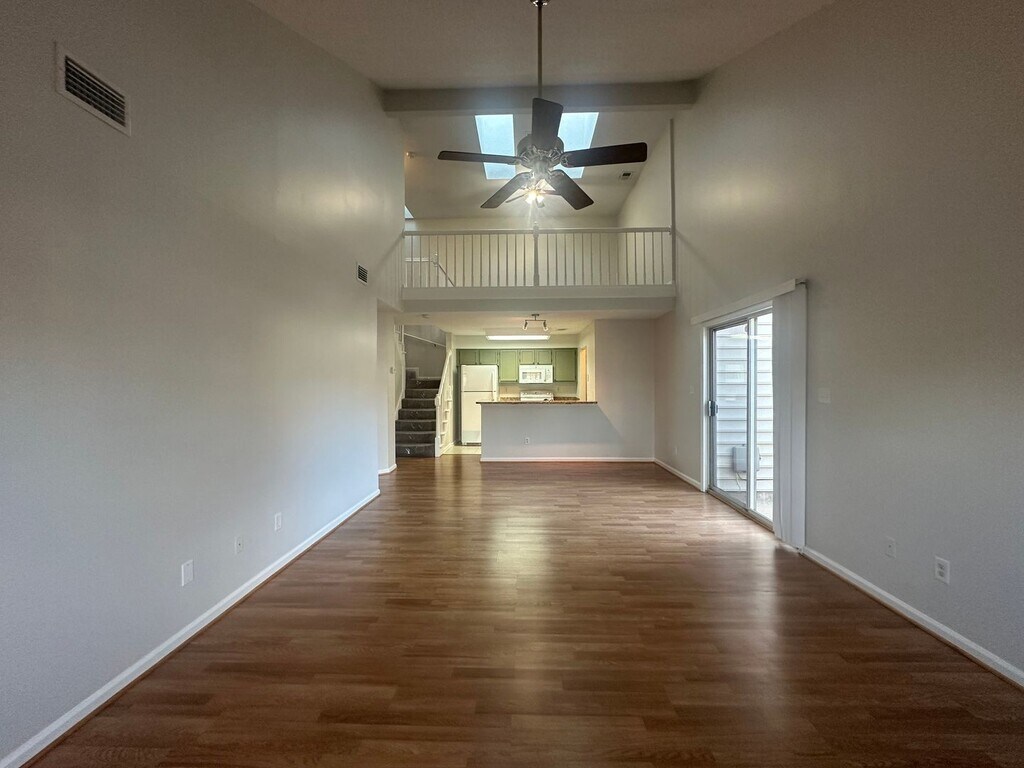 Enjoy this beautifully updated condo tucked away in the Greenbrier Fairways community. This unit features fresh paint throughout, new carpet in the bedrooms, stairs, and loft, plus impressive vaulted ceilings with skylights that fill the space with natural light. The kitchen offers new granite countertops, a new microwave, a new freezer ice maker, ample cabinet space, and a convenient pantry. The first-floor primary suite provides easy living with direct access to the bathroom, which features new granite countertops, and is accessible from the hall off the kitchen. A laundry room with a washer and dryer adds additional practicality. Upstairs, you'll find a second spacious primary with its own private bathroom featuring new granite countertops. The versatile loft area is perfect for a home office, guest space, or play area. Outside is a charming fenced patio, ideal for your own private retreat. Rent includes ground maintenance and trash. Available for immediate occupancy.