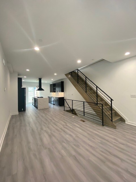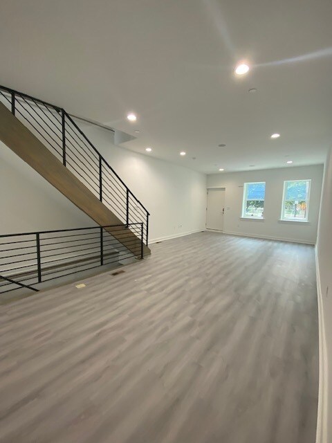 Don't miss your chance to rent this stunning 3-story, 4-bedroom, 3-bathroom townhome built in 2024 by a local developer in the heart of Wharton Square. Enter a contemporary open floor plan with custom millwork throughout, recessed lighting, and chic finishes. The kitchen features modern appliances, soft-close cabinets, quartz countertops, decorative backsplash, and a wine fridge tailored to this luxurious oasis. On the second floor, you will find ample-sized bedrooms, walk-in closets, and a primary bedroom catered to the top floor. The home includes a washer/dryer in the unit, a finished basement, a private patio, and roof deck. Create a space you'll love to come home to.
