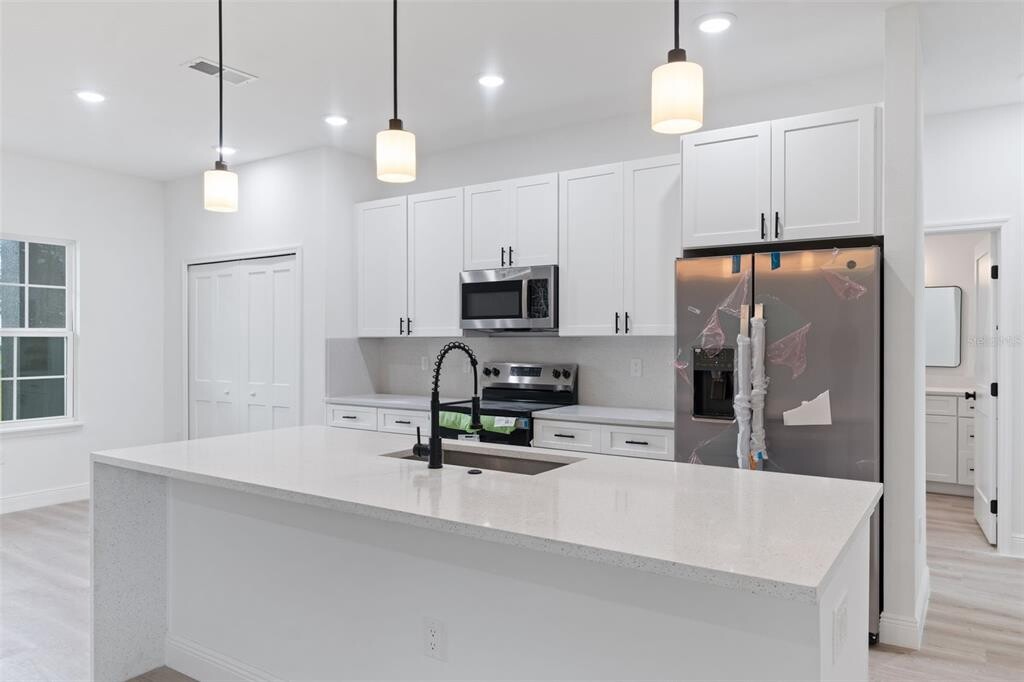 Modern New Construction Home for Rent in Prime Ocala Location Step into this stunning brand-new home in the heart of Ocala,where modern design meets everyday comfort. With 4 spacious bedrooms and 2 full bathrooms,this property offers a well-planned layout perfect for families,professionals,or anyone seeking a contemporary lifestyle. The primary suite features a luxurious walk-in closet,while each additional bedroom comes with built-in closets to keep your space organized and comfortable. The open-concept living and dining areas are bright and airy,filled with natural light from large windows and sliding glass doors that open to a covered rear porch—ideal for morning coffee,outdoor dining,or entertaining year-round. The stylish kitchen is a true centerpiece,equipped with solid wood cabinetry,sleek stone countertops,and modern appliances,providing both beauty and functionality for everyday living. Additional features include a spacious 2-car attached garage for convenience and extra storage. The home’s location is unbeatable—just minutes from major roads for easy commuting,top-rated schools,and a variety of shopping and dining destinations. This property blends modern style,practical design,and a prime location,making it the perfect choice for those looking to rent a brand-new home in one of Ocala’s most desirable neighborhoods. Don’t miss this opportunity to make it yours—schedule your viewing today. MLS# O6359963