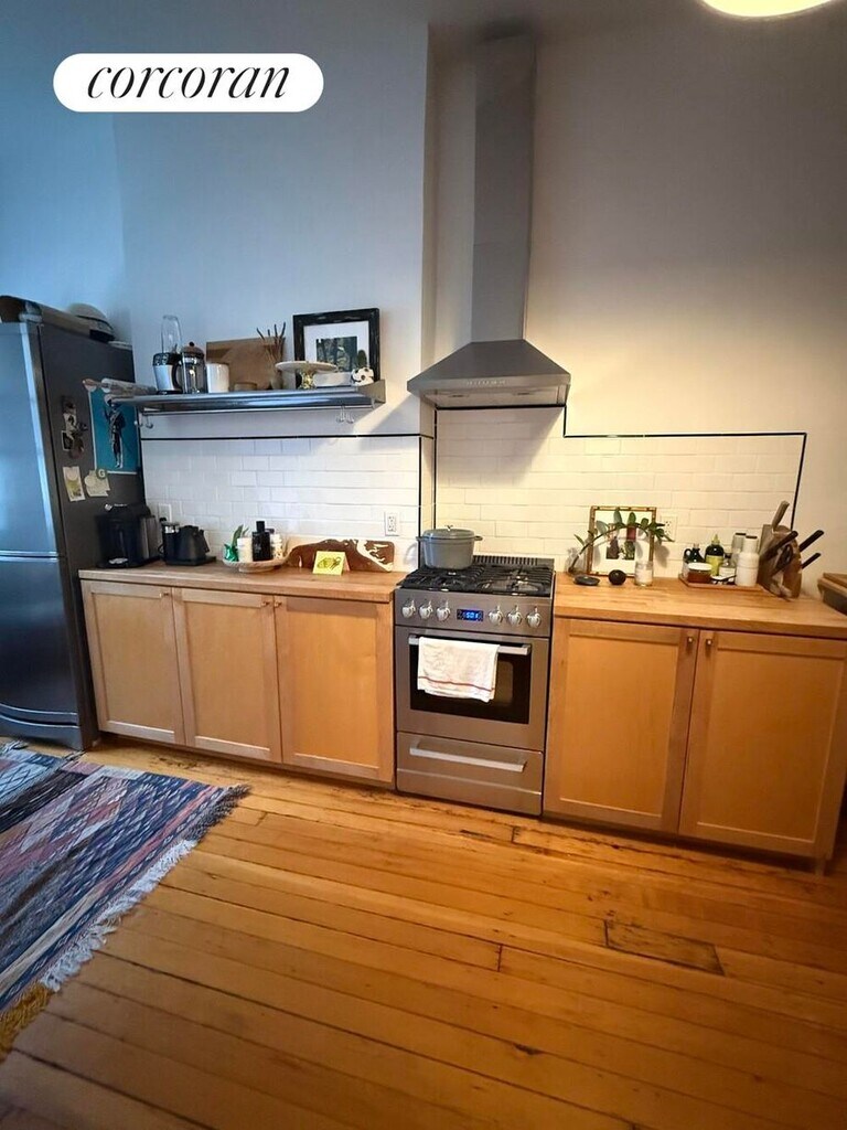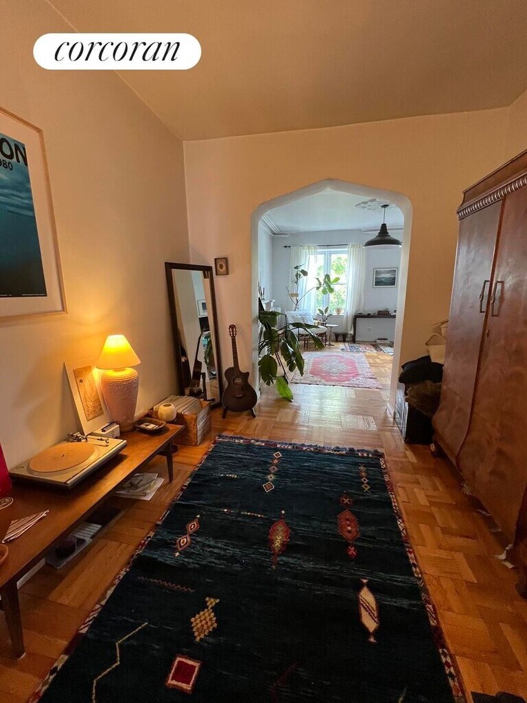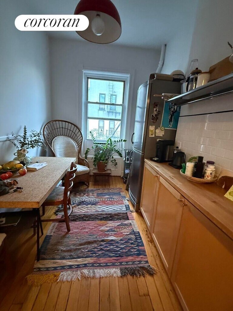 Bright & Airy Top-Floor Apartment on Coveted Noble Street in GreenpointThis spacious, sun-filled floor-through apartment-nearly 900 sq. ft.-sits on one of Greenpoint's most sought-after historic blocks. The expansive living room features three large south-facing windows, a decorative fireplace with its original mantel, and plenty of charm. A generous dining room (or library) offers flexible use, while the windowed eat-in kitchen provides ample storage and a dishwasher for convenience.The tranquil rear bedroom includes a separate dressing area, creating a private retreat. Classic details such as hardwood floors, high ceilings, and original moldings add to the home's timeless character.Sorry, no pets.$20 Application Fee per Tenant