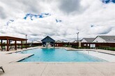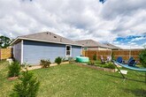 This 1 year old blue beauty is fresh, clean and cozy! Open the front door to a large and bright living area with beautiful LVP throughout. The living room has a fan to keep you cool in the warm months and the kitchen and dining area are well lit and ready to entertain. The kitchen has a fridge, microwave, dishwasher and range along with easy-to-clean granite and black fixtures. The washer and dryer will remain for your convenience, and are in the utility closet off the kitchen. Settle into the spacious primary bedroom with views of the garden boxes in the backyard, an ensuite bath with a shower and granite counter tops, as well as a large walk-in-closet. The other two bedrooms share a full size bath with granite countertops and a tub. Step outside to enjoy the well-maintained backyard lined with garden boxes and beautiful plants. With plenty of area to sit, and a fire pit for the colder months, this backyard is a perfect place to host friends and family. The community shares 2 pools, a basketball court, park, and playground.