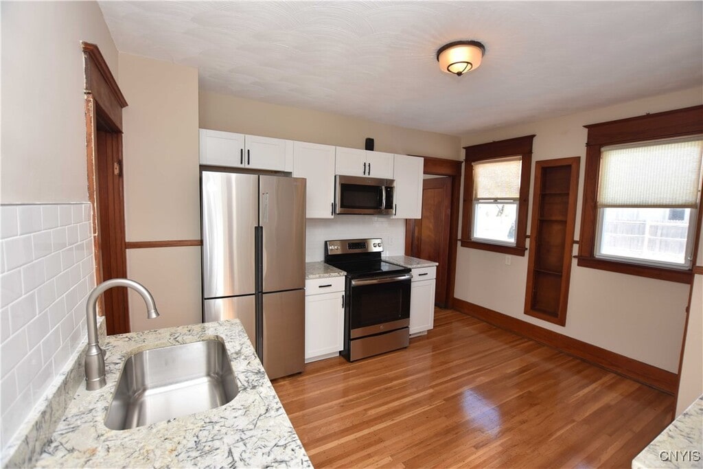 Joe McHarrisCharming craftsman style Bungalow. For rent is a charming three bedroom, one bath craftsman-style home. This quaint home is located in a desirable South Utica neighborhood on a quiet street just minutes from the Village of New Hartford. This home has beautifully refinished Rochester hardwood floors, a wonderfully update kitchen with tons of cabinets space and stainless steel appliances (to be installed soon), new lighting, efficient Vinyl replacement windows, a high efficiency gas furnace, in unit laundry, a large dry basement and a walk up full attic for plenty of storage, an over-sized detached two-stall garage, a large yard with huge deck and so much more! Just minutes away from St. Elizabeth's Hospital and Utica College. Pets are negotiable.