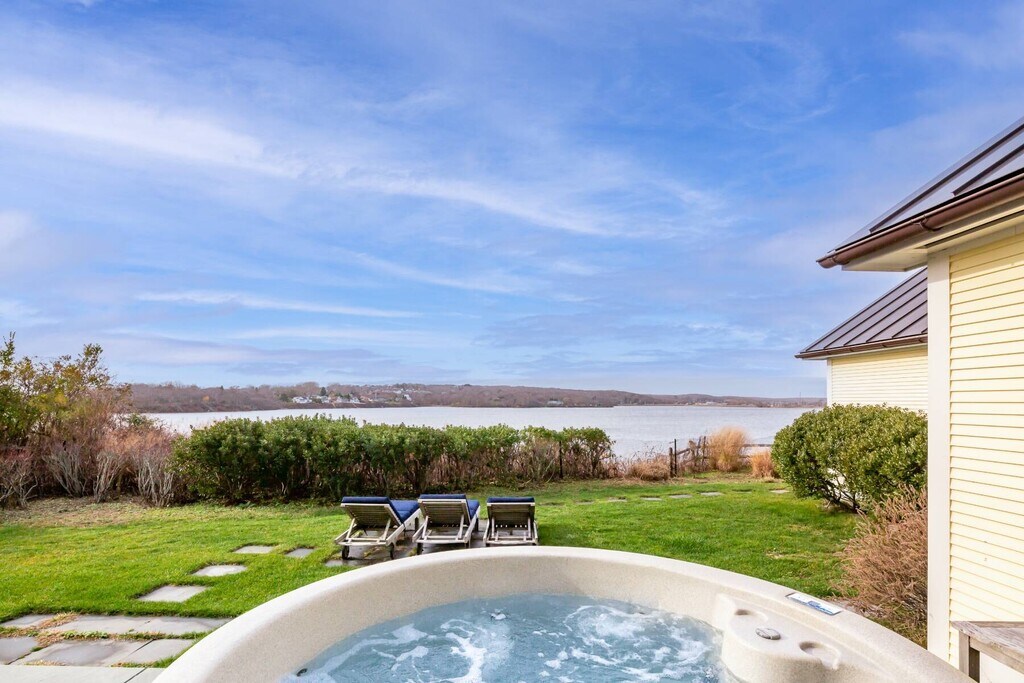 Located moments to Montauk Village and ocean beaches, enjoy expansive western facing water views across Fort Pond from this charming and light-filled waterfront Traditional. Enter through the gracious foyer that leads to an open living room with a gas fireplace and soaring ceilings, chef's kitchen, and dining area with an impressive wall of glass sliding doors and windows that frame the dramatic water views. The first floor also includes an ensuite bedroom, den, and laundry room. The second floor is comprised of the primary ensuite bedroom with water views and two spacious guest bedrooms. The sliding doors off the living room open to expansive decking and patio with chaise lounges, dining table, BBQ, and spa perfect for watching the sunset. There are two free standing guest cottages with bedrooms, living areas, en-suite bathrooms, and private patios. This is the perfect compound to enjoy all that Montauk has to offer; from sublime dinners at The Crow's Nest to miniature golf at Puff n Putt, Montauk summers are in a class all their own. [[Rental Registration # Pending]] EH RR #: 23-20 Rental Terms: July - Labor Day: $94,000 August - Labor Day: $54,000 July: $40,000 Winter Season: $11,500 Per Month June: $20,000 June/July: $54,000 Other / Short Term - Year Round: $144,000 Memorial Day - Labor Day: $108,000