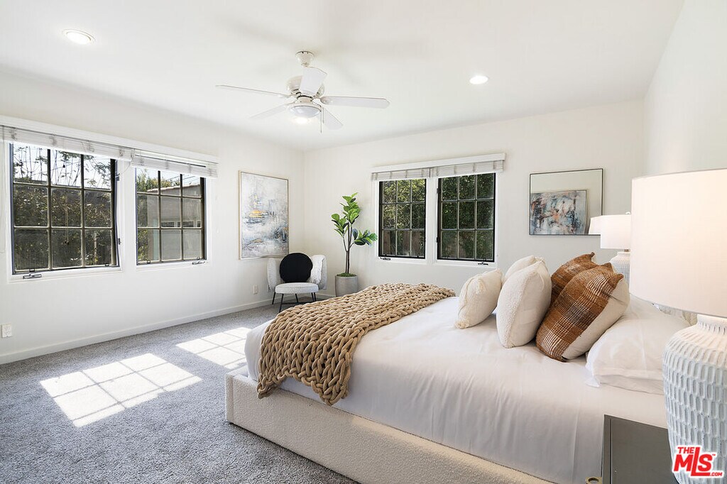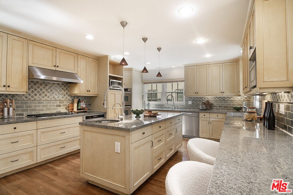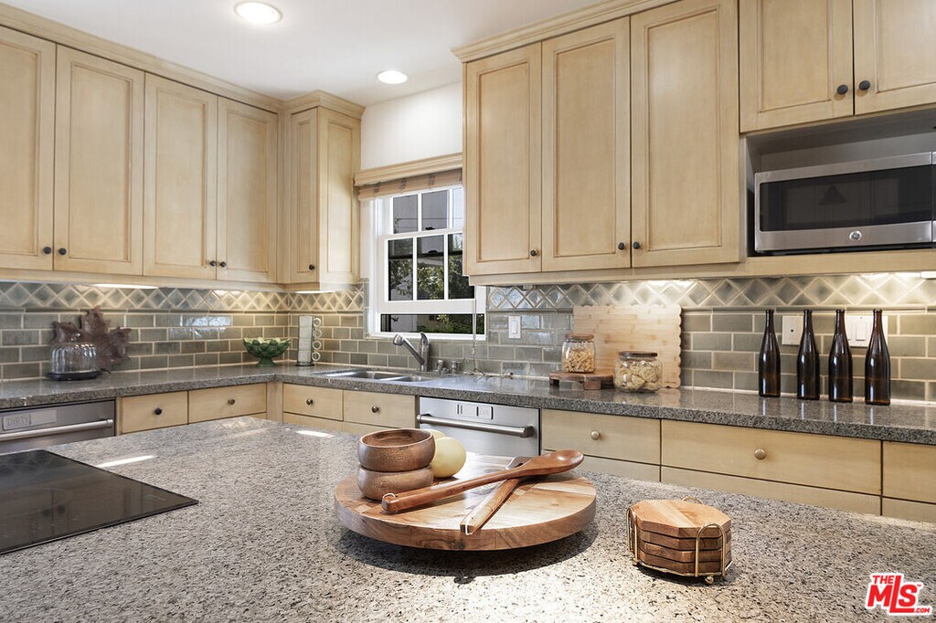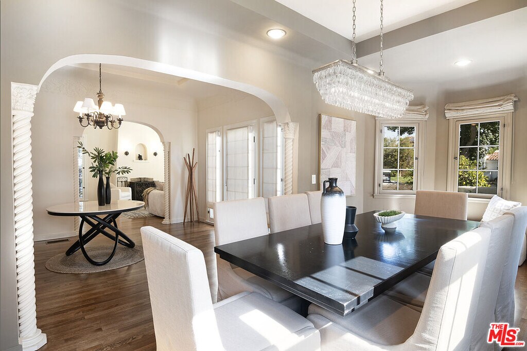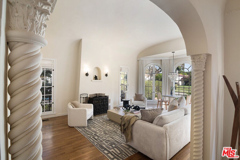 Originally built in 1928, and entirely remodeled and a second floor added to the house in 2005, 131 S Martel now has 6 beds and 4.5 baths over 3860 sq ft on a 7006 sq ft lot in a prime Miracle Mile location close to The Grove and Pan Pacific Park! The front courtyard brings you to a glass door entrance and a center hall foyer with living room on one side and dining room on the other. The living room has floor to ceiling arched windows at the front and a statement fireplace as the focal point of the room. The large formal dining room is surrounded by windows. The remodeled wood kitchen has abundant cabinetry and countertop space, a center island, 3 sinks, 2 dishwashers, double wall oven + single gas oven, oversized fridge and freezer, walk-in pantry, and built in breakfast bar. A family room with built-ins drenched in sunshine is right off the kitchen and opens to the yard. There's a great office downstairs! There are 5 beds + large office and 4.5 baths, generous closet space, and remodeled bathrooms. The primary bedroom suite has a large walk-in shower + built-in steam system + huge jetted tub with cable + Cat5 outlet. Hardwood floors, dual zone central HVAC, new solar energy + battery back-up system (that saves the current owners over 5k a yr in utility bills), 7-parameter security cameras + ADT security. A grassy yard, doggy door from house to yard, a garage for storage (that has power), and a tesla charger + high speed internet access. The location is central and amazing, right near The Grove, Pan Pacific Park, world class shopping and restaurants. MLS# 25613837