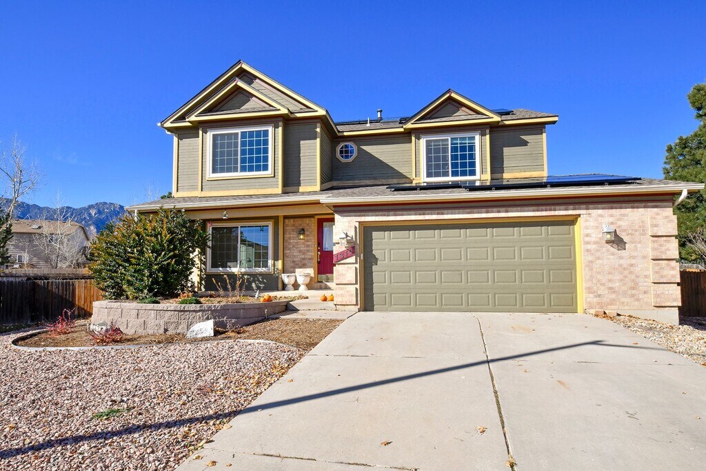 Welcome to this stunning 4-bedroom, 3-bathroom home located near Fort Carson. This property boasts an oversized garage, providing ample space for your vehicles and storage needs. The kitchen is a chef's dream, equipped with a convenient pantry, island, granite counter tops and modern stainless steel appliances. The home also features central air and a living area with a cozy fireplace. With a beautifully landscaped backyard with a slide and evergreen grass, this home seamlessly blends functionality and style.
