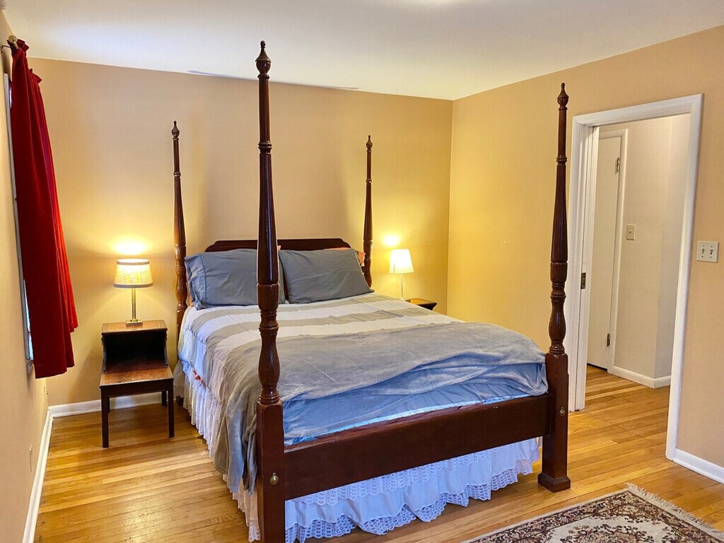 Feel at home in this super spacious 4-bedroom home that can accommodate up to 7 people, located minutes from popular Cleveland destinations such as the Cleveland Clinic, Beechwood area, and University Circle. This charming residence features hardwood floors throughout, fast Wi-Fi, and plenty of space to spread out. Enjoy the convenience of free parking with a long driveway and a two-car attached garage. The kitchen is a retro lover's dream, complete with a classic green booth for personal dining needs, all major appliances, and windows overlooking the backyard greenery. The living room, perfect for relaxation, can seat 6 people and includes a Smart TV with Roku hookup. The dining room, seating 4, connects seamlessly to the kitchen and living room. The first floor boasts a master suite with a queen bed, a TV with Roku hookup, and ample closet space, along with a master bathroom featuring a separate shower and bathtub. Upstairs, you'll find three additional bedrooms with a twin bed, a queen bed, and a double bed, along with a full bathroom featuring a shower/tub combo. The spacious finished basement offers plenty of room to spread out, a separate room with a washer and dryer, and a half bath. Pets are welcome, and the number of pets is negotiable. A cleaning fee is negotiable and is based on the number of occupants, length of stay, and number of pets. For stays beyond 30 days, there is a $500 monthly utility cap on water, sewer, electric, trash, and gas. Nestled in a safe area of Cleveland Heights, this home is close to restaurants, Whole Foods, takeout spots, coffee shops, Target, Walmart, and more. Its proximity to Cleveland Clinic and University Hospitals makes it ideal for those in recovery who prefer a home with a first-floor bedroom and bathroom. Nearby attractions include Little Italy, the Coventry neighborhood with international and veggie/vegan restaurants, Forest Hill Park's walking trails and waterfalls, and the Cedar Lee Independent movie theater. Guests have access to every part of the house. Parking on the street during the day is free, but at night, guests must move cars into the driveway to avoid a ticket. The house is equipped with a security system. Tenants are asked to use the snow shovels provided if there is less than 3 inches of snow; otherwise, snow removal is taken care of. Lawn maintenance is provided during the spring, summer, and fall. Check-in is after 1:00 p.m., with flexibility depending on your travel schedule. Smoking and big parties are not allowed. The number of pets must be approved. This older house is located in a wooded area where deer, chipmunks, squirrels, and small mice are common. Thorough cleaning is done before each guest arrives, and all precautions are taken to prevent mice from entering the house. In the rare event of seeing a mouse inside, guests are encouraged to alert the host immediately. [SI]