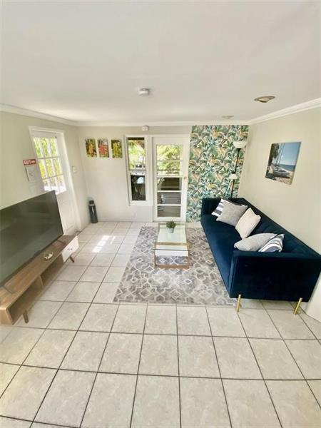 Discover serenity on the second floor with stunning waterfront and garden views. Your private screened-in balcony invites you to immerse yourself among swaying palms and the captivating Middle River. This 2/1 gem offers a cozy open concept living and kitchen area, with the second bedroom accessed through your personal balcony. Balcony is accessed through living room. Enjoy pristine community gardens and a sparkling pool. On-site laundry for added convenience. Walk to breweries, coffee shops, and dining. Minutes from the beach, parks, and nightlife. Lush shared spaces and a paved seawall for sunset vistas or kayak adventures! Community consists of only 5 units and is located in a desirable quiet Oakland Park neighborhood.
