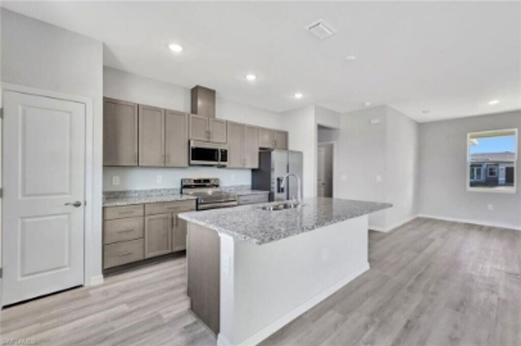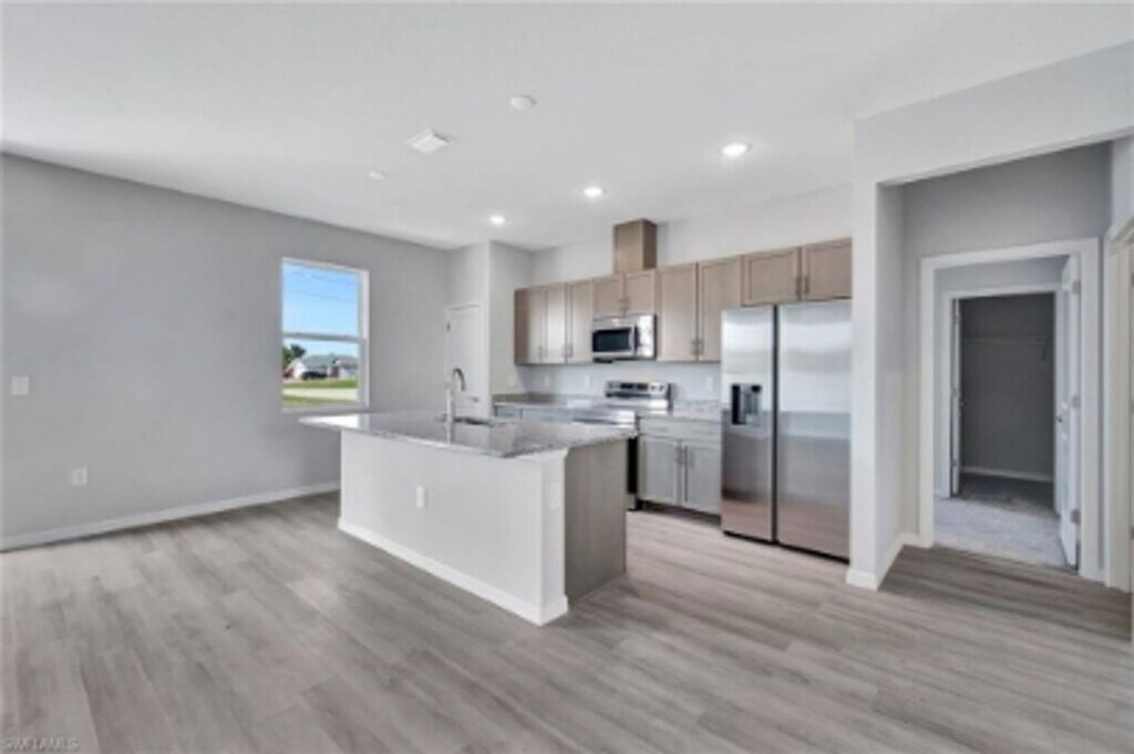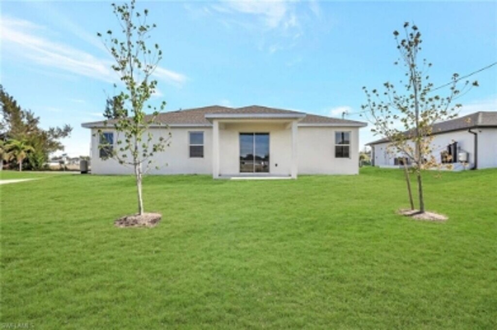 New Construction Energy Efficient Home in Cape Coral. Featuring 3 bedrooms, 2 bathrooms, and a 2-car garage. Open floorplan with vaulted 9'4” ceilings throughout and lots of windows for natural light. The kitchen is open to the main living areas. It features brand-new energy-efficient appliances, granite counters, a pantry, a center island with bar-top seating, and a dining area overlooking the backyard. Relax in the spacious living room overlooking the lanai and backyard out of the sliding glass doors. The master bedroom offers a nice retreat, and the master bathroom includes a walk-in closet, dual vanity with granite counters, and a walk-in shower. Room for everyone! The spare bedrooms are large and offer great space for families, guests, or a home office. The lanai is the perfect place to enjoy the Florida weather and BBQ and enjoy evenings and weekends in your private backyard paradise. Enjoy the upgrades and savings every month from this Department of Energy Zero Energy Ready Home with insulation, LED lighting, 50 Gal Hybrid Heater, 16 Seer variable speed A/C, Wi-Fi thermostat, Low-E vinyl dual pane windows, and Energy Star Appliances. For an additional cost, the home can be delivered with Solar Panels you own – no separate loan – for no electric bill or significant savings. Not your typical Cape Coral Home – this includes several upgrades, savings, and smart features you will not find with other houses. Located near the future 7 Islands may include restaurants, shopping, marinas, a park, green space, and possibly even a beach area! BOATERS are located near several public boat launches/ramps and Matlacha for Gulf Access, open water, world-famous fishing, beaches, and barrier islands. GOLFERS - Very close to Palmetto Pines Country Club and Coral Oaks. Close to shopping, dining, events, Starbucks, Target, Publix, and the area's top-rated restaurants. By submitting your information on this page you consent to being contacted by the Property Manager and RentEngine via SMS, phone, or email.