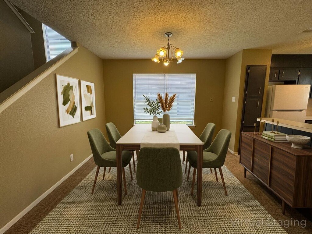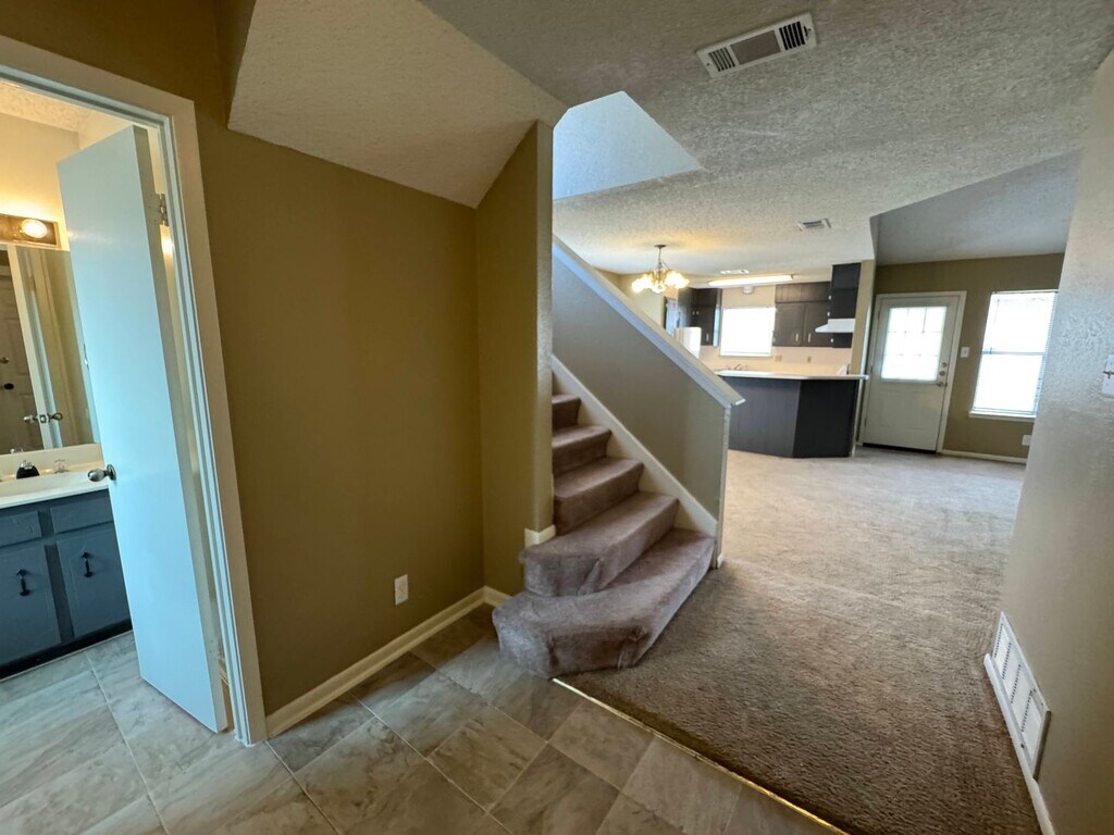 View 360 Virtual Tour: Welcome to this inviting 2-bedroom, 1.5-bath duplex offering a comfortable and functional two-story layout. The home features a combination of carpet and vinyl flooring, providing both warmth and easy maintenance. The kitchen is equipped with traditional white appliances, including a dishwasher and gas stove, making everyday cooking convenient and efficient. Downstairs, you’ll find a coat closet and half bath, ideal for guests and daily use. Upstairs offers two large bedrooms with spacious closets and a shared full bathroom, creating a private and comfortable living area. Outside, enjoy a fenced-in backyard that provides space for relaxation or pets. This is a pet-friendly home with a deposit, making it a great option for pet owners. Disclaimer: The furnishings or enhancements shown are AI-generated and intended for inspiration only. They may not reflect the actual scale, condition, or current features of the property. Appointments aren’t required to tour. Contact us or stop by our Killeen office to learn more and see this home in person once it becomes available!