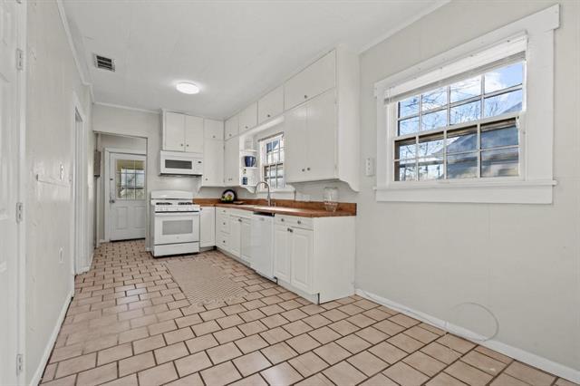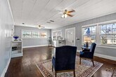 This charming Craftsman-style home offers the ideal blend of historic character and everyday convenience, centrally located near shopping, dining, and grocery stores. Begin your mornings with coffee on the inviting front porch before stepping inside to discover original hardwood floors and a sun-filled living room from all of the windows. At its heart is a striking wood-burning fireplace with gas plumbing, surrounded by intricate millwork that speaks to the craftsmanship of the 1930s. The kitchen has been thoughtfully updated with hazelnut-stained butcher-block countertops that complement the warm wood tones found throughout the home. The primary bedroom features two double windows and an ensuite bath with a tiled shower. The primary, secondary bedrooms, and rear bonus room feature newer laminate flooring installed three years ago. At the back of the home, the versatile bonus room offers flexibility as a home office or third bedroom with direct access to the backyard. Practical upgrades add peace of mind including new heating and air units with eight months remaining on the labor warranty and a remaining nine-year manufacturer warranty and a new PVC sewer line running to the alley. A rare find, the extended ribbon driveway provides ample parking with access from Morton Street all the way to the rear alley. Enjoy low utility bills with gas heat!