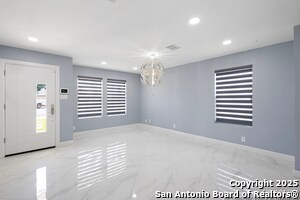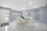 Discover the perfect blend of modern luxury and warm Texas charm at 13102 Oxford Bend. Only five minutes away from UTSA. This exquisite 4-bedroom, 3.5-bath home spans over 3,000 sq ft and showcases an open-concept design ideal for today's lifestyle. Step inside to a spacious dining room with abundant natural light, seamlessly flowing into the gourmet kitchen. The kitchen features quartz countertops, complemented by stainless steel appliances and a large island. This home features two primary bedrooms, one of which is located on the main level. Other highlights include a large family/game room upstairs and office space in the upstairs primary bedroom. The backyard features a large patio with a pergola, a storage shed, a mini basketball court, and ample space for play. Extras: Solar panels, custom window covers, water softener, Ring Security alarm system, outdoor cameras, and manifold water cutoff, epoxy floor covering in garage. Located near premier shopping areas, parks, dining, and top-rated schools, this home offers an unparalleled lifestyle opportunity. Schedule your private showing today!