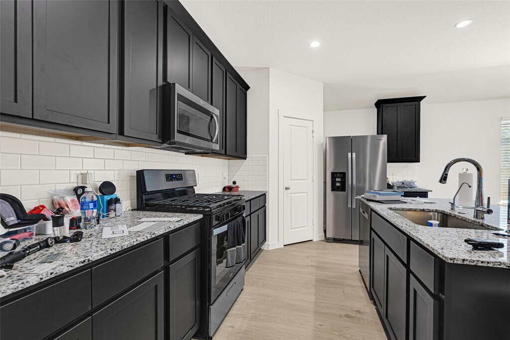 Welcome to the Gaven plan by D.R. Horton,located in the highly sought-after community of Post Oak Point! With almost 1800 square feet,this home offers spacious,one-story,open-concept living. With 4 bedrooms and 2 full baths,this is a great opportunity for those downsizing or upgrading. The kitchen and living room open up to each other and feature granite countertops,stainless steel appliances,and a beautiful view of the backyard and covered patio. Nimbus Oak REVWood floors can be seen throughout the home. The traditional exterior features an elegant brick exterior. Post Oak is the place to be,with great community amenities and a great location in the growing city of Fresno! MLS# 31268687