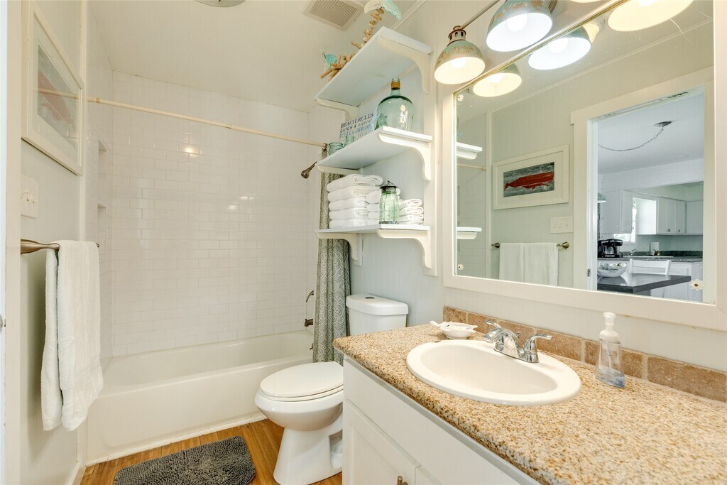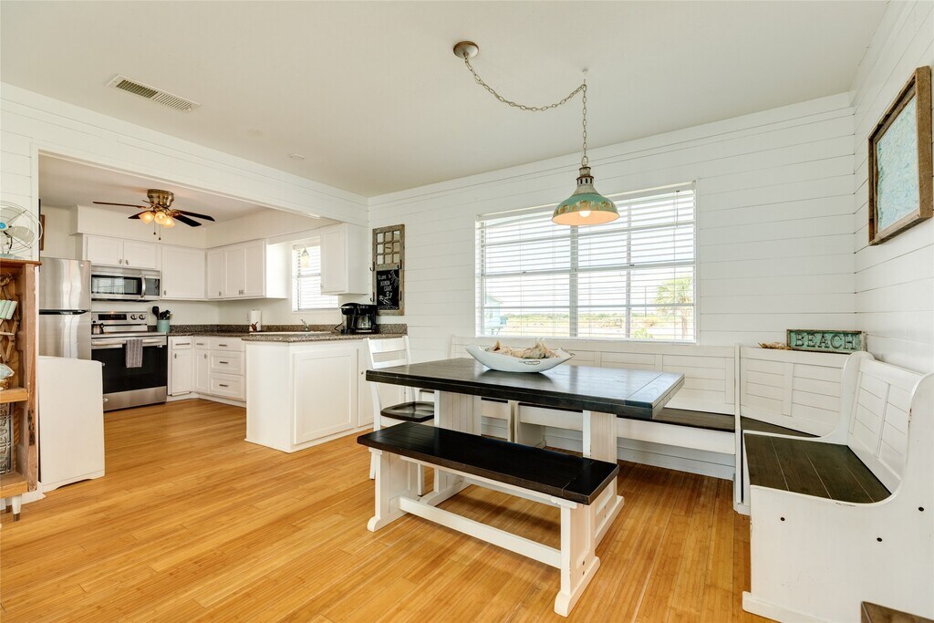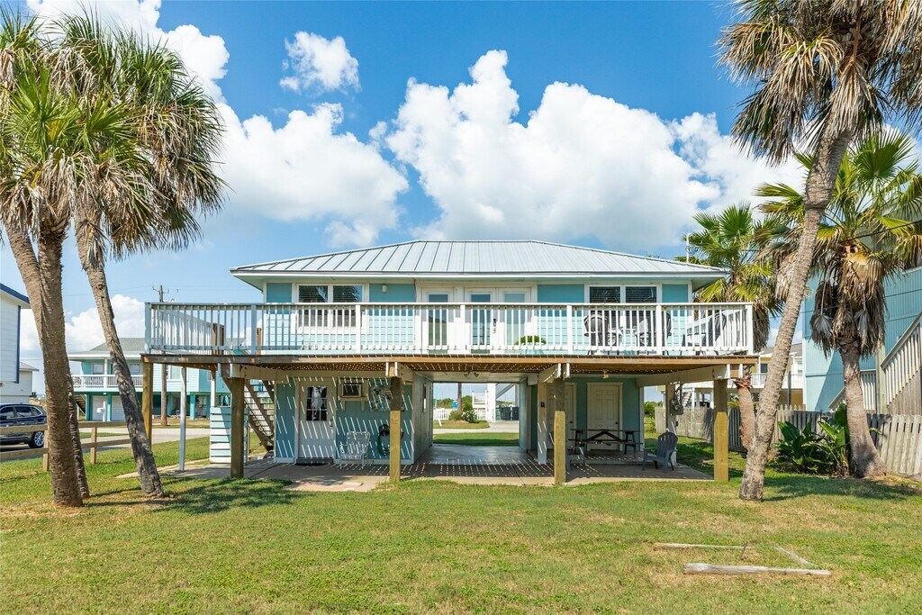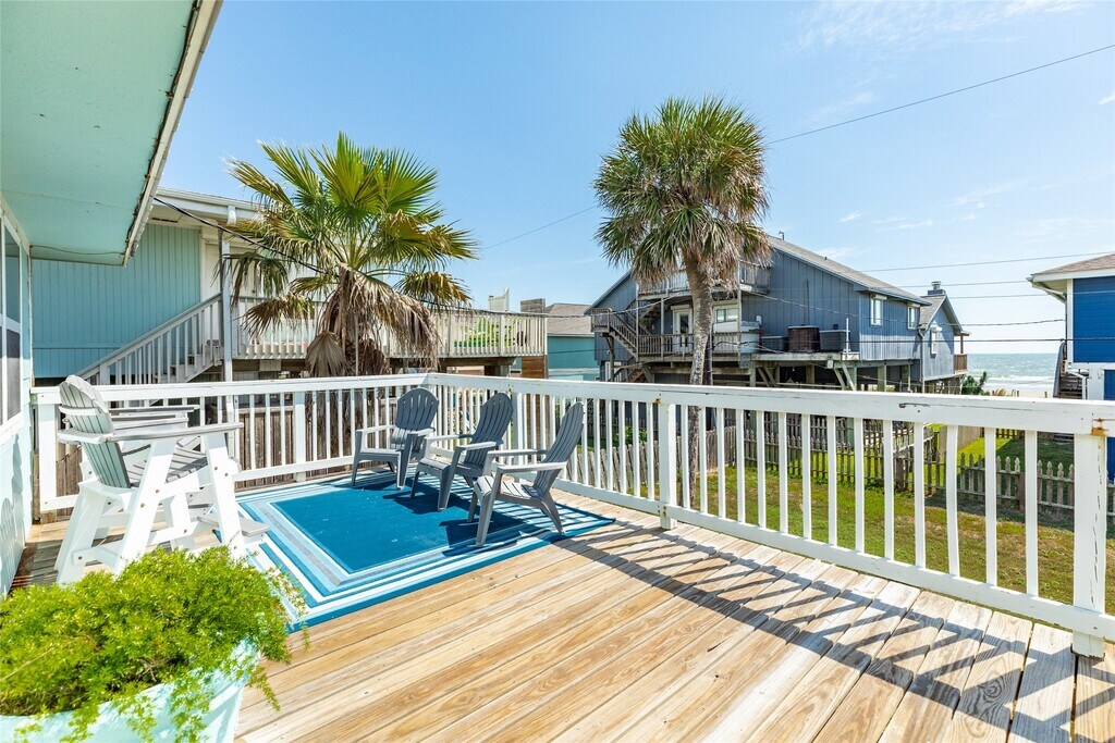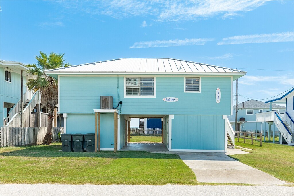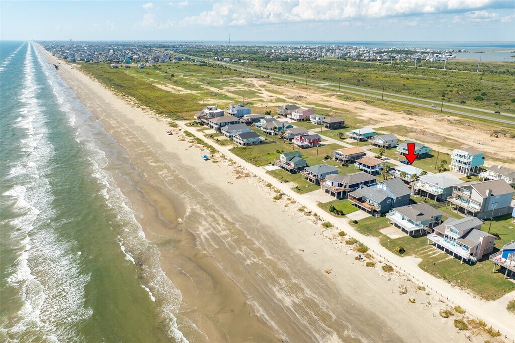 This Adorable Beach side home comes with Beach views and Gulf Breezes. Step into this open living,dining and kitchen with chic coastal decor,wood floors and ship lap walls. This open concept home offers great options for entertaining. 2 bedrooms on the first level with each having private baths. Kitchen with stainless appliances,granite counters and nice cabinets for storage. Spacious dining space for entertaining. Ground level has large bedroom or could be used as entertaining space with bath area. Upper level has deck with beach views while enjoying morning sunrises and evening sunsets. The ground level has great covered space for enjoying gulf breezes,beach views,fenced yard,outdoor shower,separate bar area and covered patio. Easy access to the beach. You are minutes to Galveston's entertainment,restaurants,shopping,grocery and more. MLS# 18044615