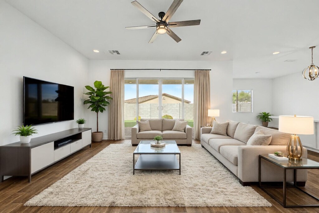 AVAILABLE NOW! Gorgeous,like-new luxury rental home offering a perfect blend of comfort and style. Features include a 3-car garage and a private gated courtyard for added curb appeal. Inside,enjoy a spacious open floor plan with sliding glass doors for seamless indoor-outdoor living. Wood-look tile flooring,ceiling fans,and modern light fixtures enhance the homes appeal. The gourmet kitchen shines with a tile backsplash,high-end stainless steel appliances,white cabinetry,quartz countertops,a walk-in pantry,and a large island with breakfast bar seating. The serene primary suite features plush carpet,a pristine ensuite bath,and a walk-in closet. Additional spaces include an open den/office and a versatile bonus room. Relax in the backyard with a covered patioperfect for unwinding or entertaining. Dont miss this exceptional home! MLS ID 7019630