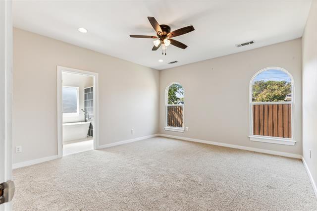 Ideally situated just a 4-minute drive from the prestigious Galleria Mall, 635, and the Tollway, this stunning home offers unparalleled convenience with walking distance to Joya Glow Park in Farmers Branch. Step inside to discover elegant dark hardwoods throughout the lower level, leading you into a thoughtfully designed floor plan with designer upgrades. The welcoming entry showcases a formal dining room that flows seamlessly into a gourmet chef's kitchen, featuring custom cabinetry and dual pantries for abundant storage, complemented by a stylish breakfast bar. The centerpiece of the home is a dramatic living room boasting soaring 20-foot ceilings, an exceptional fireplace, and abundant natural light. The primary suite, conveniently located on the first floor, offers a private bath and generous walk-in closet. Upstairs, you'll find a versatile bonus living space perfect for a home office, media room, or play area, along with three additional bedrooms and a full bath. The fully fenced backyard provides an inviting space for entertaining and plenty of room for pets to roam.