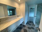 Mid-century home on a corner lot, in a highly desirable neighborhood in Farmers Branch. Spacious open floor-plan in living spaces, ideal for entertaining. The kitchen has beautiful shaker cabinets, frost white quartz countertops, chefs sink & faucet, and Samsung dishwasher and gas range. Bathrooms have modern spa-like feel, along with freestanding tub in master. Wood porcelain tiles in living spaces and designer carpet in bedrooms. Laundry room complete with pet wash station. 2 pet limit. Don't miss out on this great place! APPLY TODAY