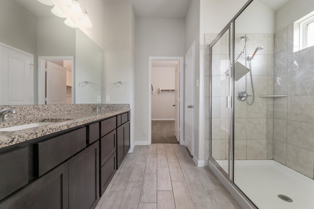 Welcome to this like-new one-story home in The Crossing at Arcadia Ridge. Designed for comfort and convenience, it features an open floor plan with high ceilings and seamless living and dining spaces-perfect for entertaining or relaxing at home. The island kitchen offers a breakfast bar, ample cabinetry, generous counter space, stainless steel appliances, and a walk-in pantry. The primary suite overlooks the backyard and includes an en suite bath with an extra-long double vanity and walk-in shower. Outside, enjoy a covered patio and spacious lawn. With updates throughout, this move-in-ready home is ready for you to make it your own.