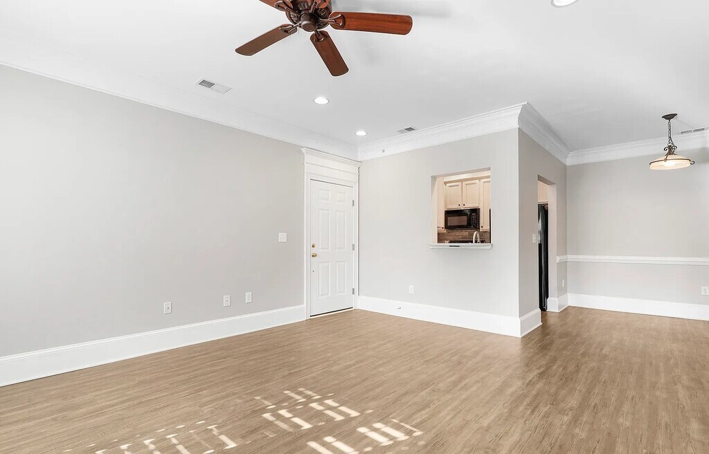 Discover this charming one-bedroom condo, perfectly positioned near vibrant shopping, dining, and entertainment options. Step inside to find beautiful hardwood floors and crown molding throughout, adding warmth and elegance to the entire space. This move-in ready condo combines comfort, style, and location