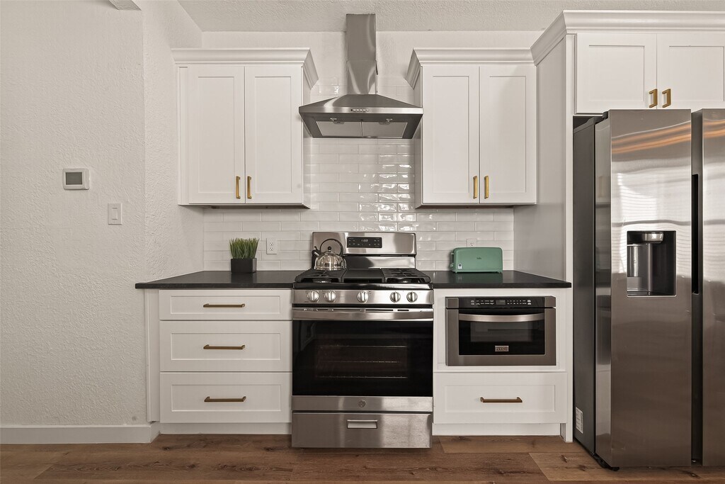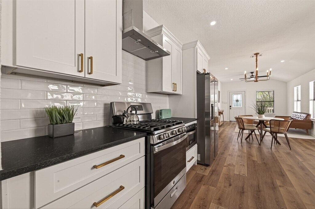 Welcome home to style,comfort,and just the right touch of modern charm. This beautifully designed home features an open layout with vinyl plank flooring,soft neutral tones,and stylish lighting that creates a warm,welcoming vibe. The kitchen is a true standout with beautiful natural stone countertops,a classic subway tile backsplash,stainless steel appliances,and a sunny dining area that flows seamlessly into the spacious living room. Perfect for everyday living and entertaining. The primary suite offers a spa-inspired bath with Italian tile,a frameless glass shower,and sleek backlit mirrors. Outside,enjoy a charming front porch,gated driveway,and a large back deck ready for relaxing or hosting friends. The fully fenced yard adds privacy and convenience. Schedule your tour today! This one is ready to welcome you home. MLS# 11188989