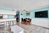 This luxury condo has it all! First floor, beachfront unit with an unobstructed ocean view. Located in Sea Colony. 1 BR, 1 BA, 680 square feet, sleeps 6. Renovated in classic cottage style. Tasteful beach colors make this condo pop with the feel of the beach. Classic whitewashed flooring with wainscoting and crown molding throughout. Custom woodwork and LED lighting adorns the property. The bedroom is fully furnished and includes a king bed with built in storage drawers. It also has 4 USB charging ports. There is a 55'' smart TV. Also a dresser and end tables are present. In the living room, there is a queen size pull out sofa, coffee end tables. The end tables do have built in charging ports for electronics. Large, 4 top table that can expand to accommodate 6 people. 2 bunk beds are tucked away in an alcove adjacent to the kitchen. 65 inch LED flatscreen smart TV and a cabinet full of board games and puzzles in case of inclement weather. The kitchen is stocked and includes full size dishwasher, refrigerator, microwave, oven/stove, toaster, blender, Keurig coffee machine and standard coffee maker. By the bar are 2 USB ports available for charging electronics. Free WiFi is also provided and the login information is located on the refrigerator. There is a full bath with tub and a quartz vanity. Included is a large capacity front load washer and dryer (new 2023). An iron and ironing board is kept in the master bedroom closet. This is a winter rental available from October through March. no pets allowed. THis is NOT a year round rental.