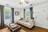 Discover this charming Crestview bungalow where timeless character meets thoughtful updates, perfectly situated in one of Austin’s most beloved central neighborhoods. Step inside to find original hardwood floors, an inviting living/dining area, and a remodeled kitchen that seamlessly blends modern convenience with mid-century charm. The vintage tile bath, well-preserved architectural details, and warm natural light give the home its signature personality. Offering 2 bedrooms plus a versatile flex space, this layout adapts easily to your lifestyle - whether you need a dedicated home office, playroom, workout area, or guest room. Comfort is effortless with central heating and cooling, complemented by ceiling fans throughout. Washer/dryer not included, but negotiable to be provided by landlord with agreeable terms. Outside, enjoy wonderful curb appeal with a welcoming covered front porch, a private backyard for relaxing or entertaining, and a detached storage structure for tools, bikes, or seasonal items. The location is simply unmatched- walk to neighborhood favorites like The Little Deli, Arlan’s Market, local cafés, shops, Brentwood Park, and Brentwood Elementary. You’re just 12 minutes from St. David’s Medical Center, 17 minutes from Casa de Luz Village, and moments from vibrant dining, green spaces, and everyday conveniences. This is a fantastic opportunity to live in the heart of Crestview -schedule your showing today and experience everything this delightful bungalow has to offer!