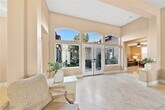 This guard gated beautiful single-story home offers 3 spacious bedrooms, 2.5 bathrooms, den & a 3 car garage in Seven Hills on Rio Secco Golf Course. Gated courtyard w/ tranquil charm. Step inside to soaring ceilings, floor to ceiling stone fireplace, elegant tile & wood flooring & plantation shutters throughout the house. The gourmet kitchen is a chef’s dream with rich espresso cabinetry, granite countertops, large center island, high end Thermador stainless steel appliances, & a custom tile backsplash. Generously sized primary suite has a complete with a spa-like bath, dual vanities, a soaking tub, a walk in shower, and walk-in closet. Two additional bedrooms are thoughtfully placed for privacy, each with access to full bathrooms. French doors off the kitchen lead to an oasis backyard with covered patio & brand new shades, sparkling pool & spa that give grand views. 3 Car garage has epoxy floors & AC split type. Rent Includes Trash, Landscape & Pool Maintenance. Home is Unfurnished.