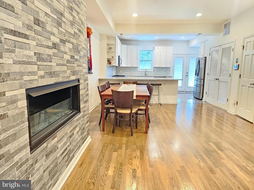 Renovated townhome just steps from the Anacostia Waterfront—Moments to Navy Yard and Capitol Hill. This updated row home blends charm, style, and convenience. Hardwood floors run throughout the main and upper levels, complementing the contemporary finishes, newer appliances, and a sleek floating fireplace. The open main level features a spacious living area, dining room, powder room, and a gourmet kitchen with a breakfast bar. A sunny south-facing deck extends off the kitchen—perfect for morning coffee or evening unwinding. Upstairs, the light-filled primary suite includes a private deck with views of the 11th Street Bridge. The en-suite bath offers a double vanity, oversized shower with rainfall head, and a skylight. Two additional rear bedrooms share a deck overlooking the park and bridge. Modern updates, great natural light, multiple outdoor spaces, and unbeatable proximity to DC’s most vibrant neighborhoods make this a standout rental. Only the main level and the upper level are for rent.
