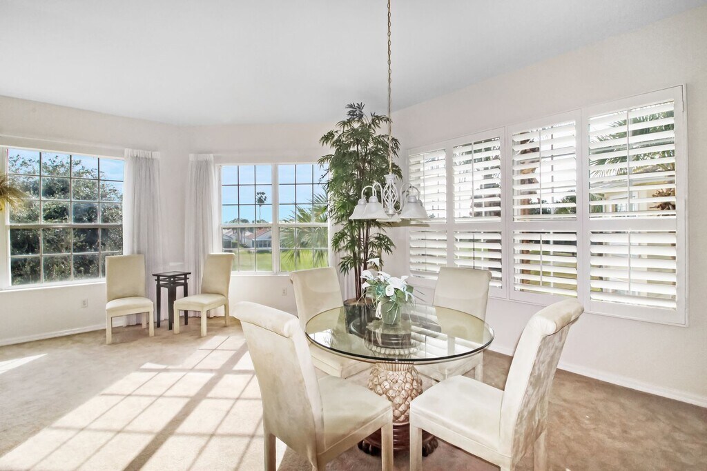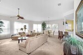 Discover your perfect seasonal getaway nestled in the desirable Triano Community. This captivating 2-bedroom, 2-bath condo, complete with a versatile den, promises a living experience enveloped in comfort and luxury. Step into the spacious living area where high ceilings and an abundance of windows not only bathe the space in natural light but also offer serene views of the golf course. The condo boasts an expansive kitchen, ideal for those who love to cook and entertain. Ample counter space and a convenient breakfast bar set the scene for memorable gatherings, while a separate dining room adds a touch of elegance to formal meals. For more casual dining, an additional space accommodates cozy, everyday occasions. Functionality meets style in the third room, which currently serves as an efficient den or office space. Retreat to the primary bedroom, a private sanctuary featuring an ensuite bathroom with dual sinks, a rejuvenating garden tub, and a separate shower. The convenience continues with an in-unit laundry room that offers additional storage space for your essentials. A convenient two-car garage provides secure parking and additional storage space. A pet under 40 pounds is welcome to join you in this serene setting, with an additional pet fee. Within this gated community, a clubhouse, fitness center, and community pool, crowned by a stunning tropical rock waterfall, provide the ultimate resort-style living. The prime location is just moments from the new Sarasota Memorial Hospital, downtown Venice Avenue's shopping and dining scene, beautiful local beaches, and the nearest Publix shopping center, ensuring that all your needs are within easy reach. Embrace the best of Venice in this elegant Triano seasonal condo—a haven of relaxation and convenience.