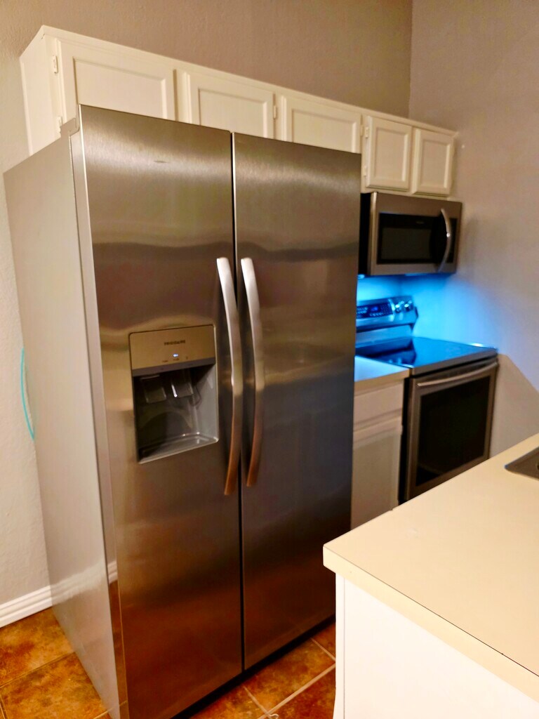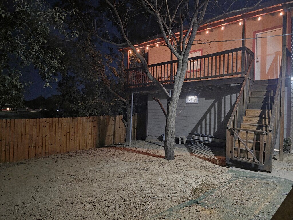 Non Refundable Application Fee ($50) Vouchers NOT accepted. No utilities included. To qualify you must pass income verification, have good rental history and have the first months rent AND security deposit due at move-in. (Rent-$1,650 - Security Deposit-$1,650) This brick on slab 3 bedroom 1 & 1/2 bathroom home features high vaulted ceilings and beautiful wood laminate flooring. The master bathroom has a skylight and new tile throughout. There's a fully functioning wood burning fireplace situated in the living room for those cozy nights in. The kitchen comes with stainless steel refrigerator, microwave and stove. There's an attached 1 car garage with an area for washer/dryer and has all connections. Also, there's another 1 car garage which is detached and located in the back of the home with a concrete drive and pathway thru. The back garage has a bonus room upstairs (can not be used as living quarters) and a beautiful upstairs wood deck overlooking the back yard and nearby park. Backyard is enclosed with a new 6 ft wood fence. A new larger central heating and air system was recently installed as well as additional vents being added for more efficient heating/cooling of the space keeping the Texas heat at bay. Lots of shopping, schools, parks and more within walking distance. This is a beautiful place to come home to. Nice, clean and peaceful family neighborhood. Contact for more information.