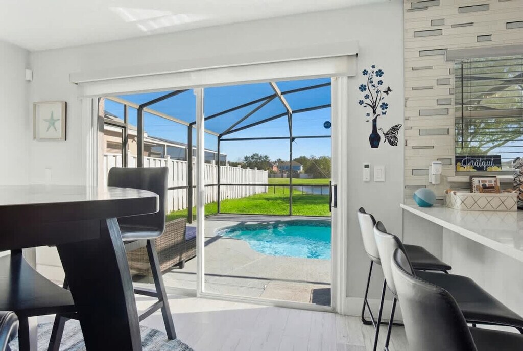 The advertised rate of $5,664/month is the lowest available price, based on a 1 month(s) stay with a move-in date of September 8, 2026. Rates vary depending on the duration of stay, season, and other parameters. For exact pricing and additional pricing components, please visit our website and enter your desired move-in and move-out dates. The rate is applicable when billed upfront; it can be higher if billed in multiple payments. Feel at home in this 4-bedroom, 3-bath home that sleeps up to 11 people. This home features a fully stocked kitchen with modern appliances including a fridge, stove, dishwasher, coffee maker, microwave, toaster, and blender, as well as dishware and silverware. It also includes smart TVs in all rooms, hot and cold A/C, and a washer and dryer. Complimentary toiletries, hair dryers, bed linens, and towels are provided. Free parking is available for up to 4 cars. Nearby attractions include Orlando Airport (14 minutes), International Drive (17 minutes), Animal Kingdom (25 minutes), Magic Kingdom (25 minutes), Epcot (25 minutes), Hollywood Studios (25 minutes), Universal Epic (20 minutes), Universal Studios & Volcano Bay (20 minutes), SeaWorld (20 minutes), Discovery Cove (18 minutes), and UCF College (31 minutes). Quiet hours are between 10 PM and 9 AM. A fine of up to $500 will be applied if maintenance or housekeeping reports that the house smells like smoke. Check-in is at 4 PM and check-out is at 10 AM. The maximum limit at the property is 4 cars. Any damage or missing games are the responsibility of all guests during your reservation, which may result in additional charges. To avoid any extra charges, please leave the home in the same condition as when you arrived. [SI]
