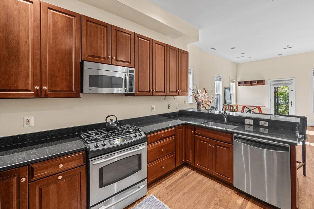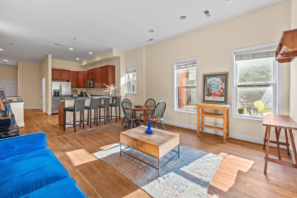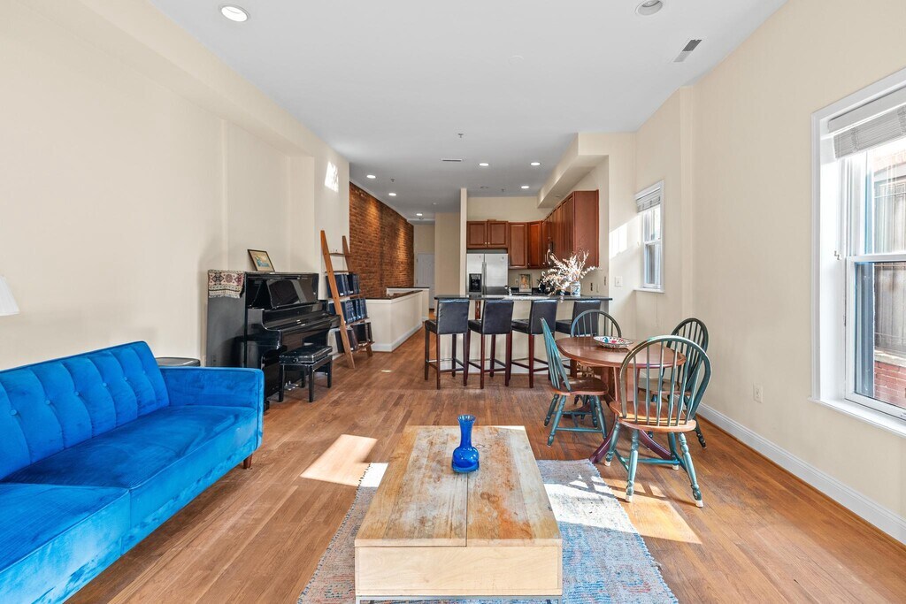 Beautifully Renovated Two-Bedroom Condo with Parking. This stylish two-level condo blends modern updates with thoughtful design. The light-filled open-plan living area features soaring ceilings, hardwood floors, and a sleek kitchen with ample storage, contemporary finishes, and a breakfast bar. Glass doors lead to a private balcony overlooking a lush shared garden—ideal for morning coffee or evening relaxation. On the lower level, two spacious bedrooms each offer en-suite baths and generous closet space, creating a perfect retreat. A washer/dryer, off-street parking, and partial furnishings (second bed needed) add convenience and ease. Situated moments from U Street and Columbia Heights, you’ll be close to shopping, dining, and vibrant nightlife, with Columbia Heights Metro just a 10-minute walk away. Available 1st November. Tenants pay for the gas, electric, Wifi and alarm. All tenants will be professionally referenced and credit checked. Credit scores of 700+ . Pets are on a case by case basis. Partially furnished. Available 1st November