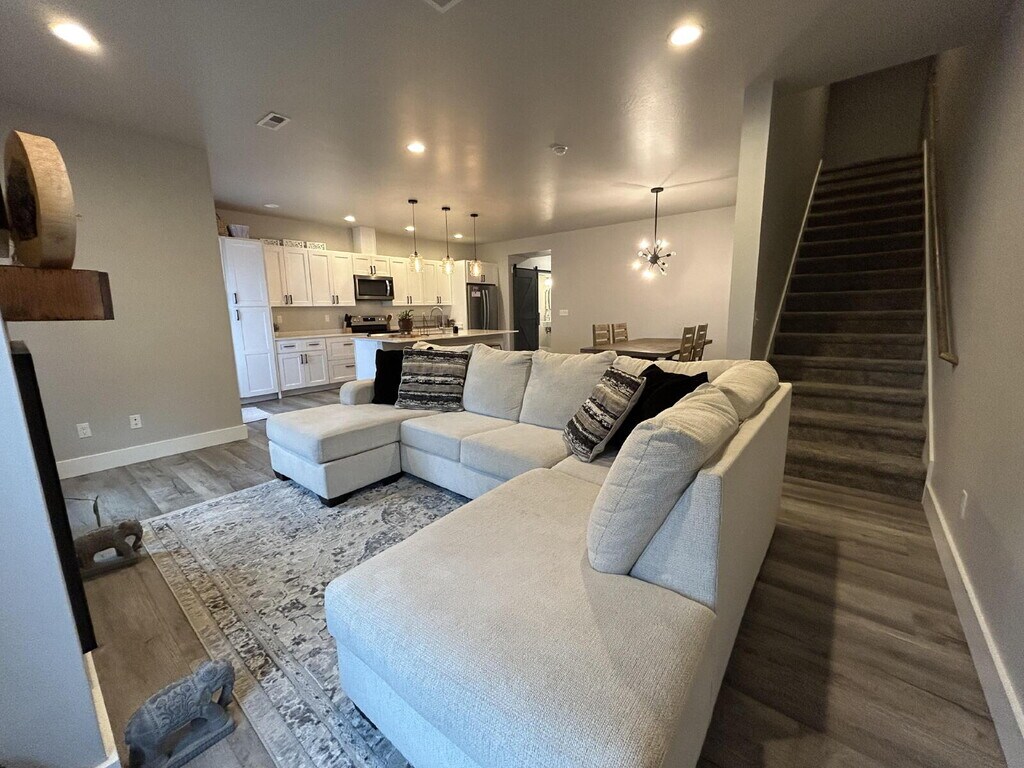 Welcome to this stunning fully furnished 3-bedroom, 2.5-bath townhouse located on a desirable corner lot in a quiet, well-kept neighborhood. This home offers modern comfort, spacious living, and unbeatable convenience. Step inside to an inviting living area featuring modern furnishings, a cozy fireplace, and large windows that fill the space with natural light. The large kitchen is a standout—complete with granite countertops, a huge center island, and ample cabinet storage, making it perfect for cooking, entertaining, and everyday living. Upstairs, you’ll find three generous bedrooms, including a spacious primary suite. Each room offers plenty of closet space and comfortable layouts to suit any lifestyle. Enjoy the outdoors in your fully fenced backyard, ideal for relaxing, grilling, or play. The home also includes an attached 2-car garage and extra storage, giving you plenty of room for gear, equipment, or seasonal items. Located close to a park, this townhouse offers easy access to walking paths, open space, and community amenities. Highlights: - 3 bedrooms, 2.5 bathrooms - Fully furnished with modern décor - Corner lot with fenced backyard - Large kitchen with granite countertops & oversized island - Spacious bedrooms with ample storage - Cozy living room with fireplace - Attached 2-car garage - Excellent location near park