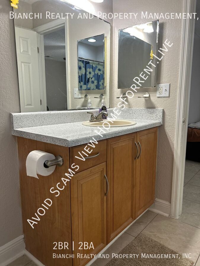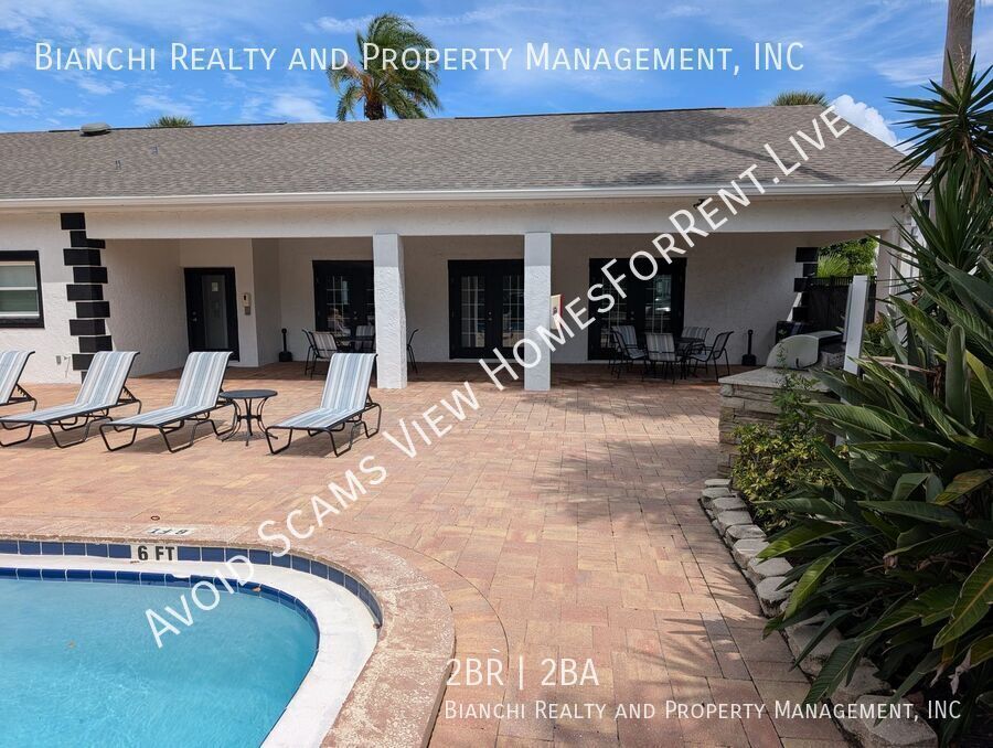 Welcome to your new home! This spacious 2-bedroom, 2-bath condo offers comfortable living in a well-maintained community just minutes from the Gulf beaches. Step inside to a bright kitchen with plenty of cabinet space, updated countertops, and stainless steel appliances, perfect for preparing meals while enjoying a view of the landscaped grounds. The open living area features tile flooring throughout, neutral paint, and modern lighting, creating a clean and inviting space to relax or entertain. Includes Water and Sewer. Enjoy your morning coffee or evening wind-down on the private screened-in balcony, overlooking the community’s lush green spaces. Both bedrooms are generously sized with large windows for natural light, and the condo includes two full bathrooms, each with updated vanities and plenty of storage. Water is included in the rent, adding extra convenience to your monthly living. The Fountains of Largo community offers excellent amenities including a sparkling swimming pool, laundry facilities, and beautifully maintained courtyards. Located close to shopping, dining, and just a short drive to the beaches, this condo combines convenience and comfort in one great package. Pet-friendly rental - medium pups and cats welcome. Don’t miss out on this opportunity, schedule your showing today and make this Largo condo your next home! Visit