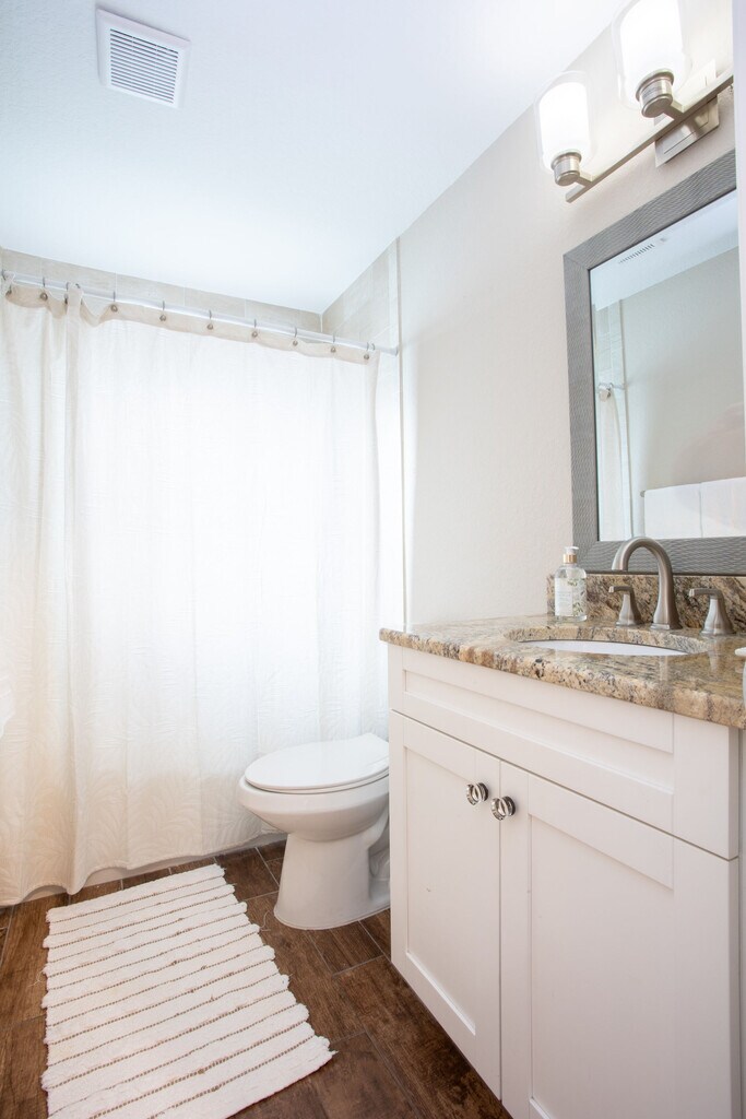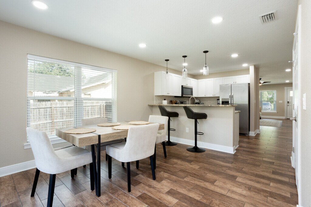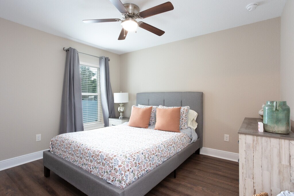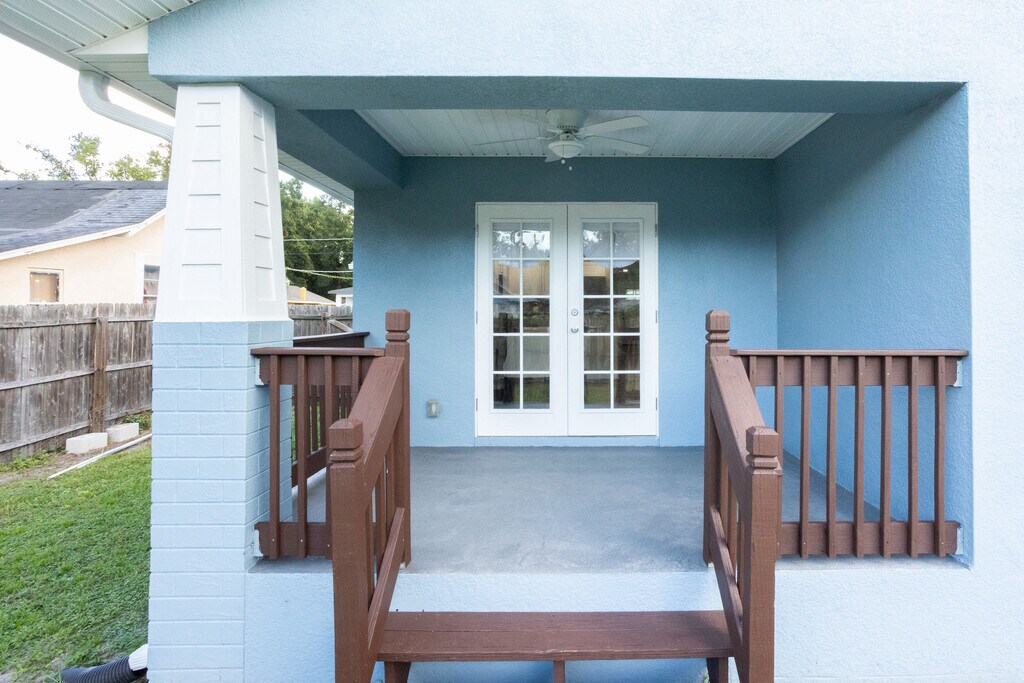 Located in the neighborhood of Seminole Heights, the area offers tranquility within central Tampa. This charming single-story house located in East Seminole Heights offers cozy and warm ambient peaceful living in the heart of Tampa! With over 1500 square feet, this bungalow has two bedrooms, two full bathrooms, and a dedicated office space. Perfect for traveling professionals, designed to offer the perfect balance of comfort and convenience in mind, in a stylish and stress-free living space. The primary bedroom suite has a queen bed, side table with power charge, full size dresser, Samsung Smart TV, ceiling light fans, black-out curtains, walk-in closet, and private bathroom/shower with a long vanity. The guest bedroom has a queen bed, full size dresser, closet, black-out curtains, and a ceiling light fan. There are two full size bathrooms with one located in the primary suite and other is a guest bathroom with tub/shower and single vanity. Linen closet in lighted hall with bed lines and towels. The living room offers ample space for entertainment and cozy relaxation with a 65 inch Samsung Smart TV, plush sofa-sleeper, accent chairs, side table with power charger, floor lamp, desk/table, and a modern remote-controlled ceiling fan. Kitchen and dining room is an open floor plan with plenty of cabinet space and a large pantry. The kitchen is fully equipped/stocked with full-size fridge, microwave, stove with oven, Cusinart toaster/air-fryer/coffee-maker, knives, blender, pots and pans, plates, glasses, etc. The kitchen also has a breakfast bar countertop with two stools and opens up to dining area with table and 4 chairs. Perfect for dining entertainment! The dedicated office space is equipped with a 6 feet modern desk, desk chair, surge protector, computer monitor, desk light, Frontier WiFi, ceiling light fan, small closet. Outside, the front porch has outdoor furniture seating, security camera, carport and driveway. The spacious backyard space is fenced in with palm trees and sitting area for those calm nights under the Tampa night sky. With a short 40-minute distance to beaches for some sunbathing and water-sports or kayaking in Wekiwa Springs or minutes from Hillsborough River, this home centers you in the heart of Tampa.