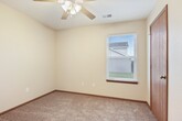 Move into this nice neighborhood with an extra wide street and extra wide driveways that allow each side of the duplex to have cars parked double wide. This unit is all one level, all electric has 3 bedrooms, 2 full baths. 1200 sq ft of living space. Large living room that has a door leading out onto the good size patio. Eat in kitchen that comes with stove, refrigerator w/ice maker, dishwasher and over the range microwave. Also off the kitchen is an entrance into the double car garage w/opener. In the hallway there is a closet that holds your washer/dryer. Bedrooms are at the back of the duplex. One bath off the hallway and one in the master bedroom. This unit will be ready mid-late March 2026. Get pre-approved today at