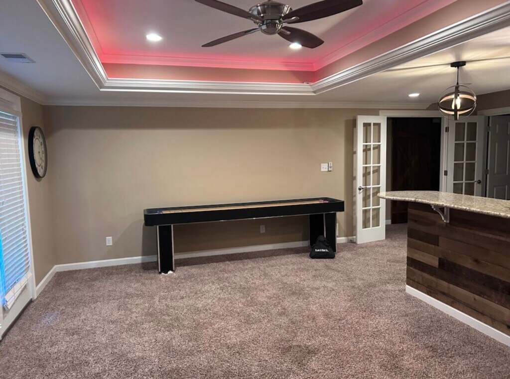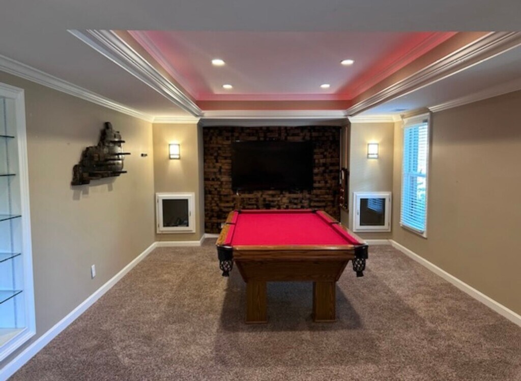 STILL OCCUPIED COMING NOVEMBER 2025! Welcome to 1313 Provident Creek Court, a rental home full of personality and situated in the coveted Shakes Run community. This four-bedroom, 3.5-bathroom residence is located at the end of a tranquil cul-de-sac, with a tree-lined backyard that backs up to protected green space. Inside, you'll find elegant bamboo flooring, custom cabinetry, and granite countertops in the kitchen, which also features stainless steel appliances. The living room, with built-in shelving and a gas fireplace, opens up to a soaring ceiling and a versatile loft area. The main floor includes a luxurious primary suite with a tray ceiling, walk-in closet, and a spa-like bath with a soaking tub, separate shower, and dual vanities. There’s also an additional closet with a combination lock for securing valuables. The second floor offers two more bedrooms, a full bathroom, and a loft area with attic storage. The lower level is perfect for entertaining, featuring a bar area with charred bourbon barrel staves, a fireplace, and walkout doors to a covered patio. It comes complete with a pool table for entertainment, a luxurious hot tub, with a hot tub cleaning / lawn service included. The spacious layout offers ample room for relaxation, while the optional weight room set adds convenience for fitness enthusiasts. This level also includes a fourth bedroom, a stylish bathroom with a barn door. The backyard, with stones reclaimed from a country chimney, is bordered by trees for added privacy. Shakes Run offers fantastic amenities, including two pools, a clubhouse, playground, and a workout room, all included with the HOA. With a full 2-plus car garage and ample storage, 1313 Provident Creek Court is truly a standout choice. Come see why this home is “The One” for you! Professionally managed by Kentuckiana Property Management. The tenant is responsible for all utilities and must have a decent credit history. No open/current bankruptcy or foreclosure or owe previous landlord or apartment community.