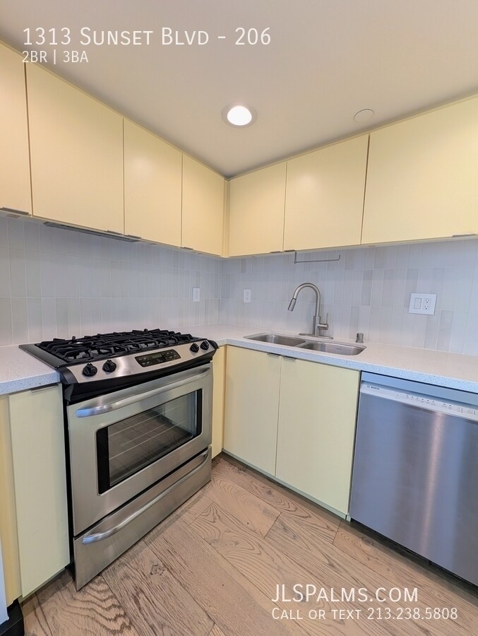 Look and Lease! Currently offering the remainder of the month free, from the first tour date. This townhouse style two bedroom two and a half bath offers a bonus studio or office space plus half bath and private outdoor patio on the entry level. Upstairs we find a soaring 16 foot ceiling with inviting hardwood floors with new front load washer and dryer, Central Air Conditioning and Heating, a full kitchen with stainless appliances, custom tile backsplash. Split master bedrooms each with their own ensuite full baths with new frameless glass shower doors. Brand new in 2019. Be among the first to call 1313 Sunset home! Newer Construction! Fiber Internet with massive sixteen foot high ceilings! Designed for creative types with very spacious floor plans, Modern stainless steel appliances and a raw industrial feel. Perfect for entertaining, or recharging after a long day. Sip coffee on your private patio, or cook up a feast in your stainless kitchen. Large open floor plans with walk-in closets and washer/dryers in each home are a perfect canvas for you to customize. Central Air Conditioning and Heating. Located on Sunset Blvd with all the fun of Echo Park steps away. Walk to Guisado's Tacos, Bar Henry, Konbi, The Park's Finest, The Short Stop and Button Mash! Only a short Lyft to DTLA, or Silver Lake! Can friendly apartment offers 2 parking spaces (tandem). Newer Construction Lofts with Fiber Internet access, Elevator, Onsite Manager, Double Height Ceilings, Unique floor plans with quartz counters, stainless appliances, authentic hardwood floors and In-Unit Laundry. Residents pay RUBS utilities based on square footage pro-rata.