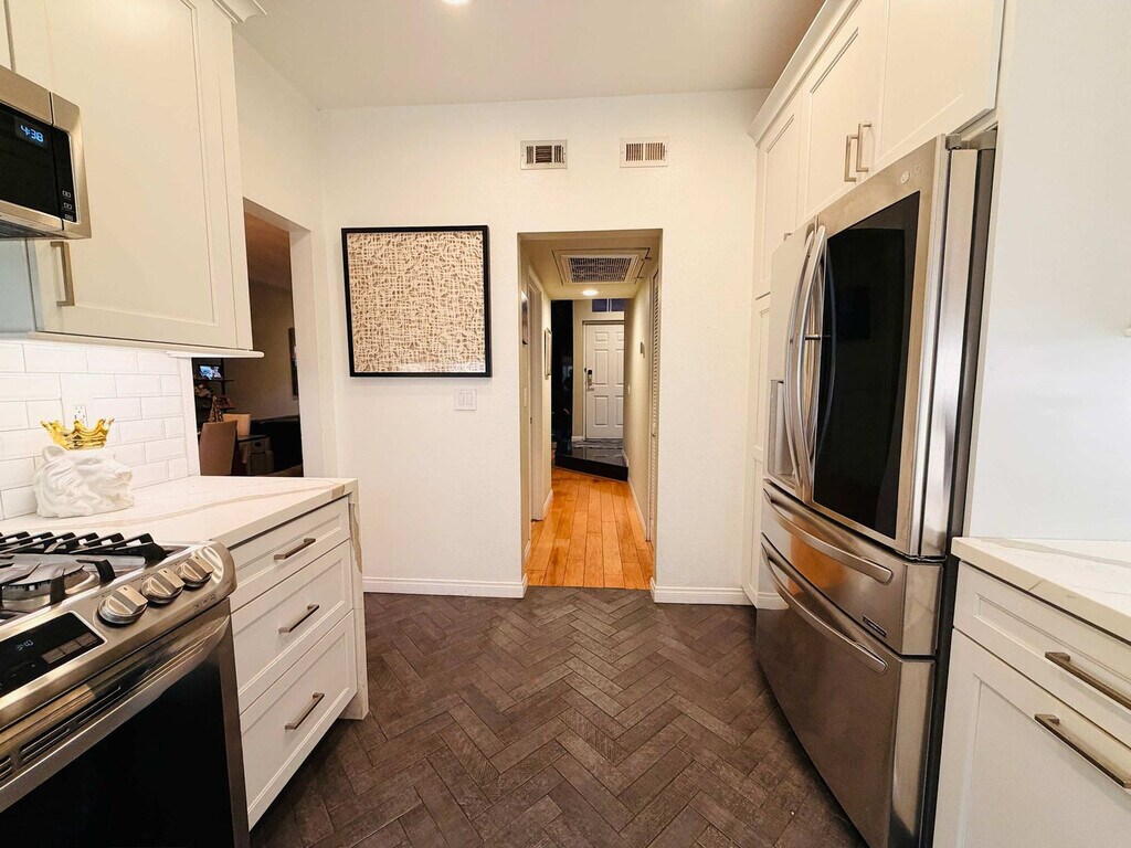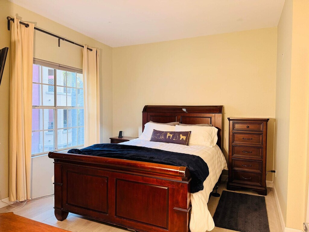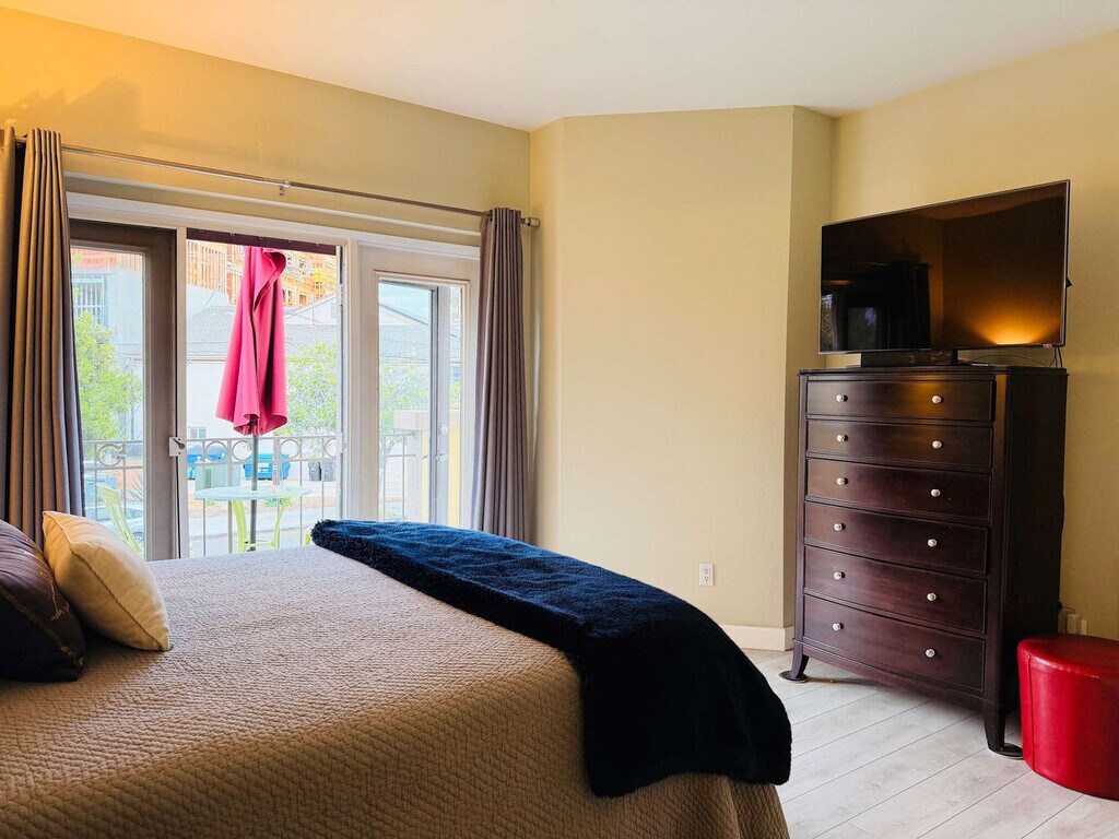 Feel at home in this stunning townhouse in the heart of Hillcrest, just 10 minutes from downtown San Diego. This 2-bedroom, two and a half bathroom property is designed for ultimate comfort and enjoyment. The open-concept main living area seamlessly integrates the living room, dining area, and fully equipped kitchen, creating an inviting space for socializing or unwinding. The living room features comfortable furnishings and a television. Step outside onto either of the two patios or the private balcony just outside the primary bedroom to enjoy the SoCal sunshine or city views. Additional amenities include a hot tub, pool, and fitness center. Two secured underground parking spaces are available. Situated in the heart of Hillcrest's Uptown District, this townhouse offers convenient access to San Diego's premier attractions, including Balboa Park, the San Diego Zoo, and the beaches. This is truly a walkable community with tons of shopping just outside your front door, including Ralph's and Trader Joe's grocery stores only 500 feet away. It's a 15-minute walk from Balboa Park and a 15-minute drive to many beautiful San Diego beaches in Mission Bay/Pacific Beach. The Walk Score for this address is 95 out of 100, making it a walker's paradise with easy access to 163, which takes you to downtown San Diego in about 10 minutes. Guests must be 25 or older to book. Quiet hours are between 10 PM and 8 AM. There's a $250 monthly cap for SDG&E (gas & electric); anything above this amount will be billed to the guest. [SI]