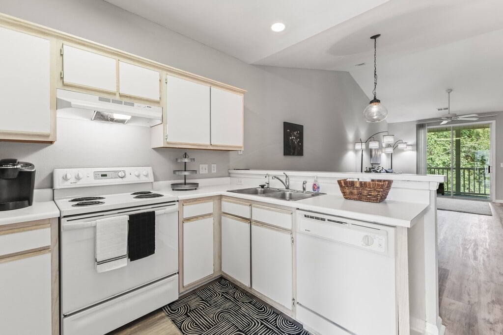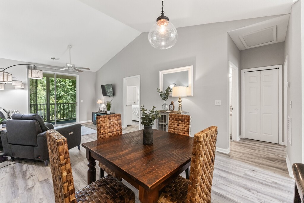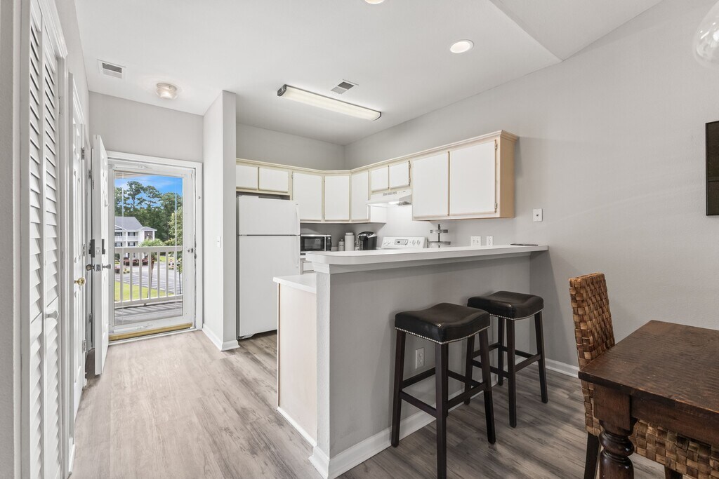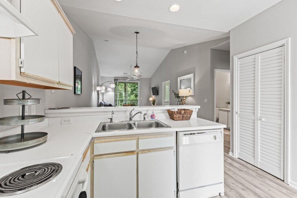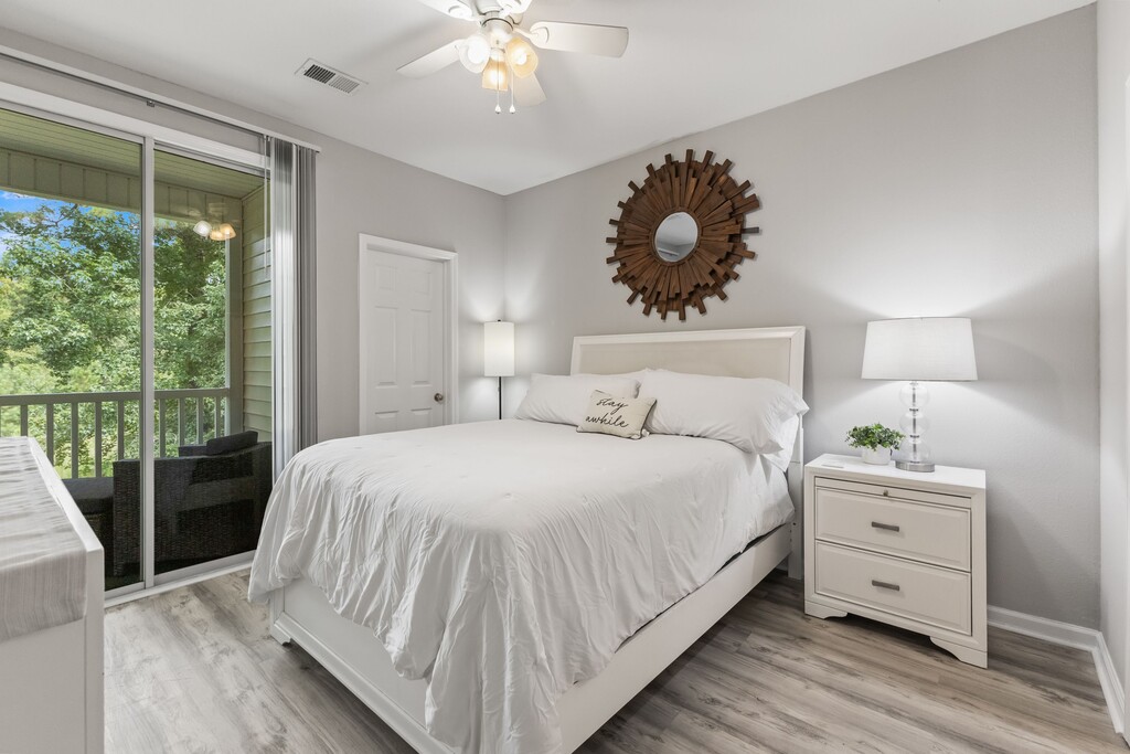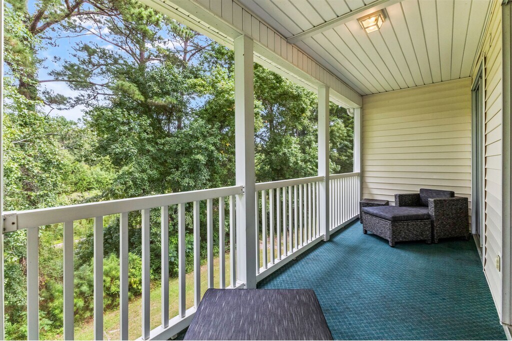 Beautiful, Fully Furnished 2 BR 2 BA Condo at The Fairways at River Oaks! This unit is the top floor with vaulted ceilings, sliding glass doors off main living room and bedroom, and a 16ft long screened-in rear porch with wooded views! Approximately 10 min drive to the beach and just a few minutes to local attractions, restaurants, grocery, golf, and shopping plazas. HVAC & Hot water tank installed 2022, LVP flooring installed 2023 and W/D 2020. Master bedroom with partially updated master full bath. Second bedroom also boasts a partially updated full bath. Both bedrooms have walk-in closets and windows for natural light. Amenities include an outdoor pool, hot tub and tennis court on property. Sorry, no pets allowed. 1 Year lease with the option to renew. Water, cable, trash, and landscaping is included; tenant only pays Wi-Fi and electric. Contact Monarch Property Mgmt. for details, and to book a showing!