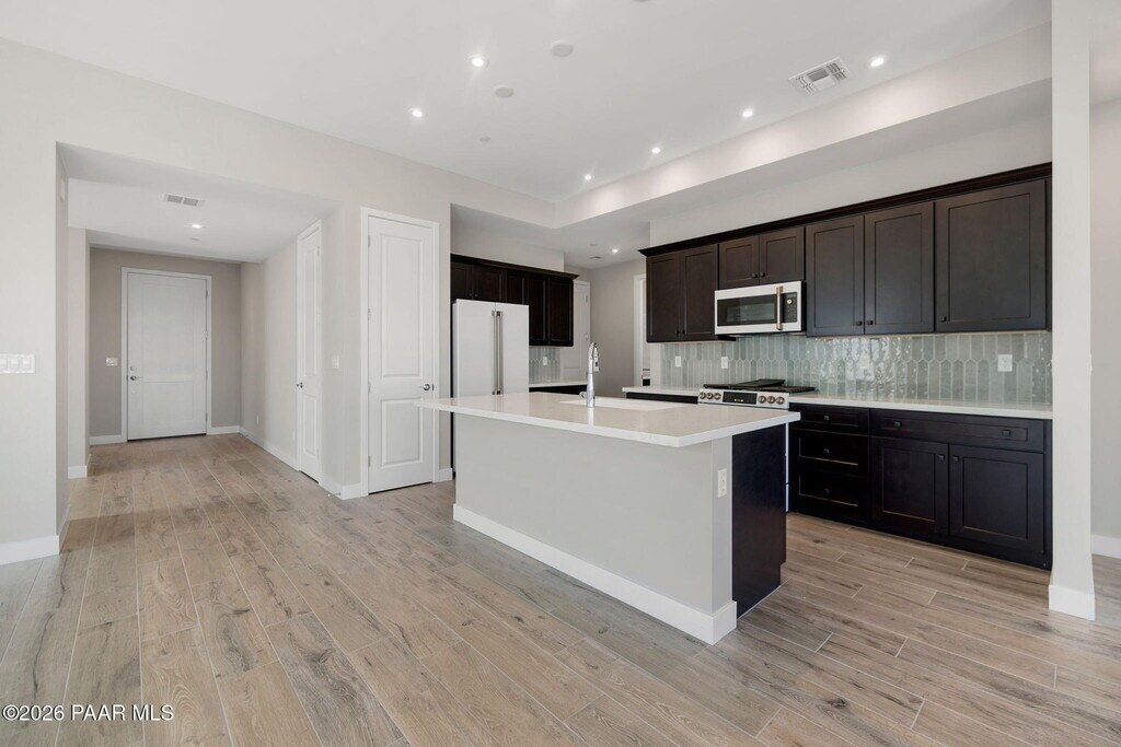 A stunning Mandalay Complete new home nestled in the beautiful locale of Prescott,AZ. Boasting a spacious 1,649 square feet,this home offers 2 bedrooms plus a den and 2 bathrooms,The thoughtfully designed floor plan includes a 2-car attached garage for convenient parking. Step inside and experience modern elegance. With 10-foot ceilings in the great room,you'll feel a sense of openness. Cozy up on chilly evenings by the fireplace,creating the perfect ambiance for relaxation. Enjoy the breathtaking views from the covered patio,immersing yourself in the natural beauty that surrounds you. The fully landscaped front and rear yard further enhance the appeal of this home,providing a serene outdoor oasis.