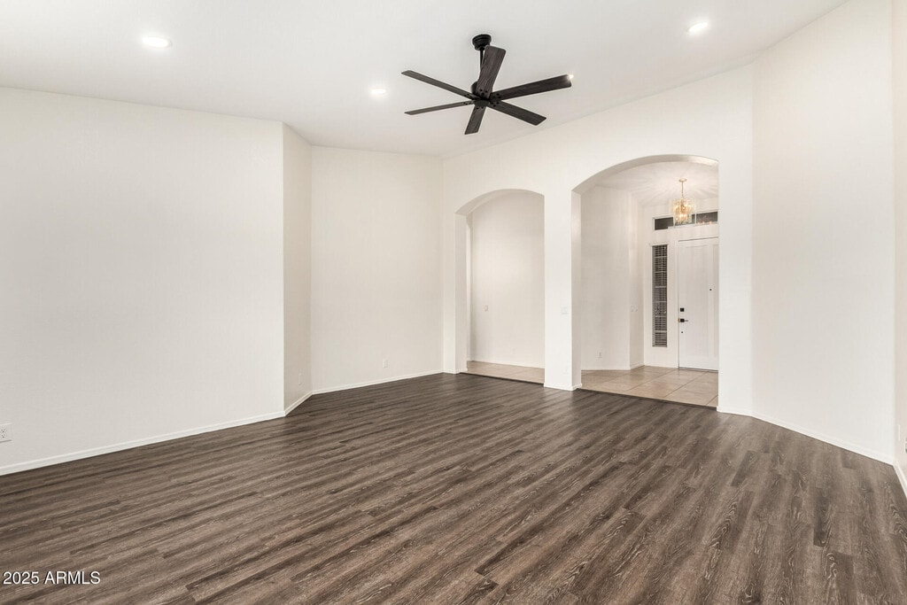 Welcome home! This beautiful 4-bedroom,2-bath single-family home offers a spacious split floor plan with 2,154 sq. ft. of comfortable living space. The kitchen features charming two-tone cabinets,granite countertops,and a large island with a breakfast barperfect for casual meals or gathering with friends and family. It opens right into the dining area,making entertaining easy and enjoyable. You'll love having both a separate family room and living room,giving everyone plenty of space to spread out. Both bathrooms carry the same modern design as the kitchen for a cohesive look throughout the home. Step outside to a peaceful backyard with lush green grass and a covered patioan ideal spot to relax,play,or enjoy weekend barbecues. Located just minutes from restaurants,shopping,and entertainment in Downtown Gilbert,this wonderful community offers beautiful green spaces,tot lots,and walking and biking paths that make it easy to enjoy the outdoors.