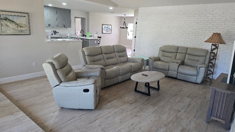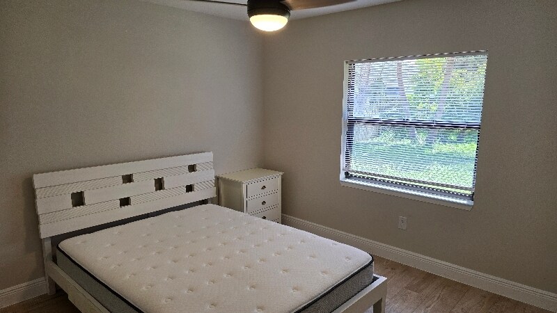 Property Id: 2016687 Fantastic location and just renovated! Almost everything is new! Large 2,060 square foot house in a safe neighborhood located just minutes from Palm Bay Road. Large, beautiful kitchen with quartz countertops, all new appliances, stools for eating close, plenty of cabinet space, etc. Features: Queen bed, large closet, ceiling fan w/remote. Shared bathroom has double sink vanity, with LED lit mirrors. Co-living residents will share access to the kitchen, living room, dining room, bathroom and have a designated space in the kitchen and fridge for personal items. Terms: Free initial application. A background check is required. 3 month min. lease (negotiable) All utilities included. Fully furnished. (Tenants can bring their own.) About your Landlords: We are a husband-and-wife team. As you can see, we take pride in our renovations. Let us know if you have any questions! Jonathan and Carrie *Furniture is being updated. *Pets allowed in other bedroom w/access to backyard.
