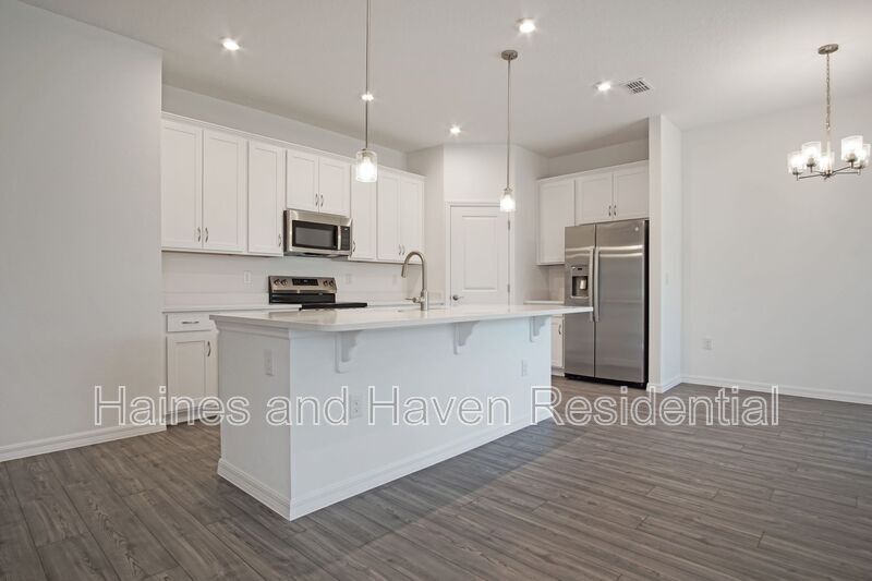 This 4-bedroom, 2-bathroom home in Covered Bridge at Liberty Bluff offers a great blend of style, space, and functionality. The open-concept layout seamlessly connects the kitchen, dining, and living areas—perfect for both everyday living and entertaining—featuring a breakfast bar and plenty of room to gather. The thoughtfully designed split floor plan places three secondary bedrooms and a full bathroom with double vanities at the front of the home, while the private primary suite at the rear includes a walk-in closet and dual vanities for added comfort. Additional features include a two-car garage, covered lanai for enjoying the Florida weather, and a washer and dryer included for your convenience. Residents enjoy access to community amenities such as a pool, cabana, dog park, gazebo, and walking trails, all just minutes from Lake Eva Community Park, downtown Haines City, and with easy access to Highway 27 for commuting.
