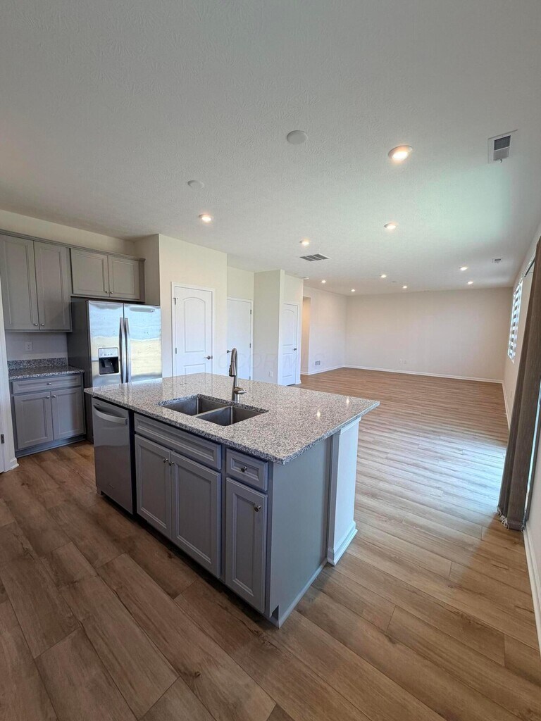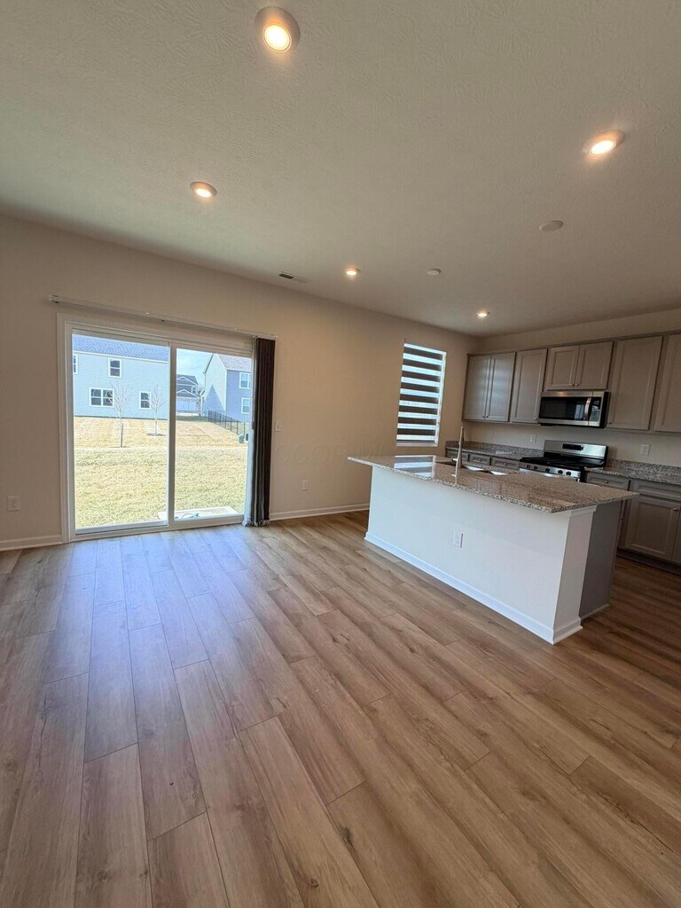 Brand new and never lived in,this 3-bed,2.5-bath home in Eagle Creek is ready for its very first tenants. Located in the highly desirable Olentangy School District and just minutes from Polaris,shopping,dining,and everyday conveniences. The bright open main level features a modern kitchen with granite countertops,stainless KitchenAid appliances,a large island,and a walk-in pantry flowing into the great room and dining area. Upstairs you'll find all three bedrooms along with a spacious loft,perfect for a second living area,office,or playroom. The primary suite offers a private bath with double vanity,walk-in shower,linen closet,and a large walk-in closet. Upstairs laundry with washer and dryer included,LVP flooring on the main level,carpet upstairs,a 2-car garage,and smart home features make everyday living easy and comfortable. The community also offers walking paths,a park with a tot lot,pergolas,and open green space to enjoy.