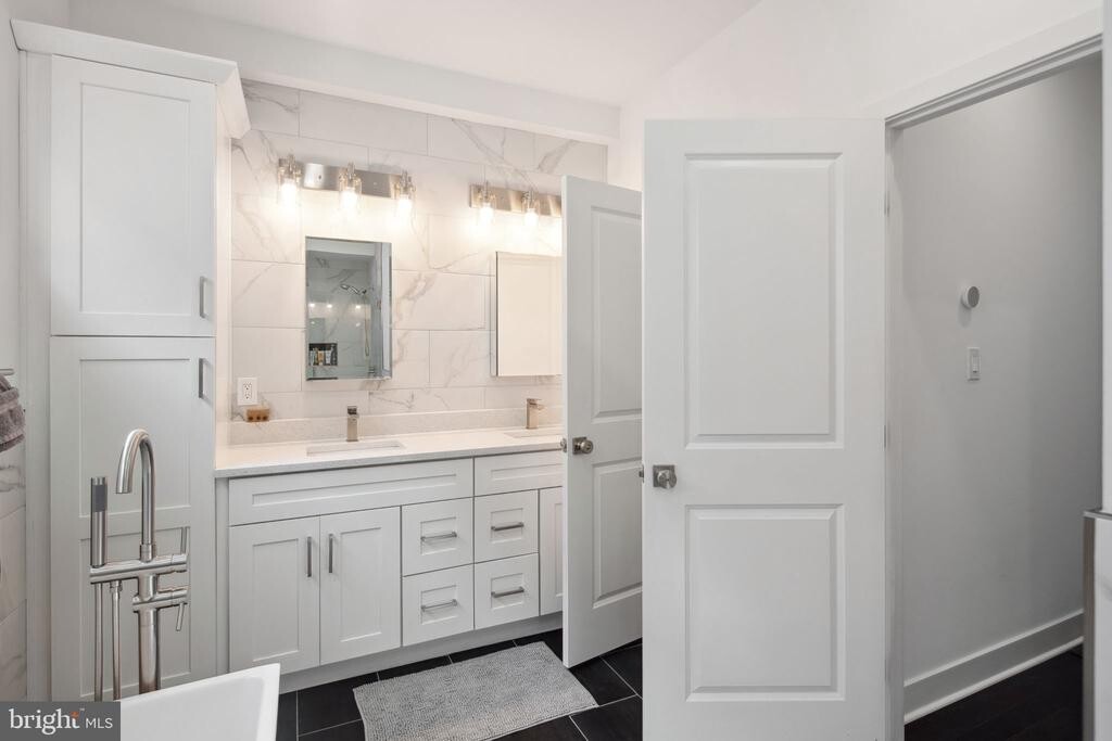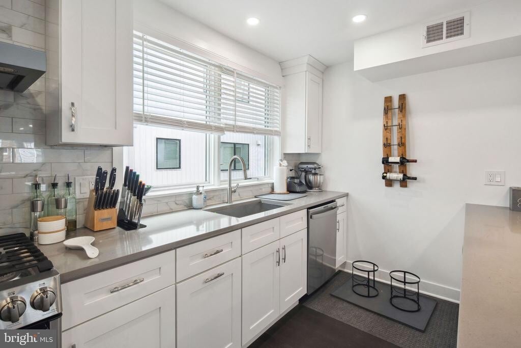Welcome to 1315 S Capitol St, part of the Wharton Court luxury development in Point Breeze! This stunning 3 bed, 2 & 1/2 bath townhome offers both traditional charm and modern sophistication, featuring a spacious floor plan with 14' ceilings in the main living room, an abundance of natural light, and a private garage that leads directly into your home. The sleek kitchen boasts stainless steel GE Profile appliances, a spacious layout, and overlooks the living room with glass railings, providing an open and airy feel. The owner's suite occupies an entire floor with a spa-like bathroom, including a soaking tub, large shower, and massive walk-in closet. Upstairs, you'll find two more bright bedrooms, a laundry closet, and a dry bar leading to the rooftop deck with breathtaking city skyline views. Located in the heart of Point Breeze, Wharton Court is minutes from Center City, University City, CHOP, and I-76. Enjoy smart home features like thermostats, a door lock, and a video doorbell, all controllable from your phone or tablet! Schedule your tour today