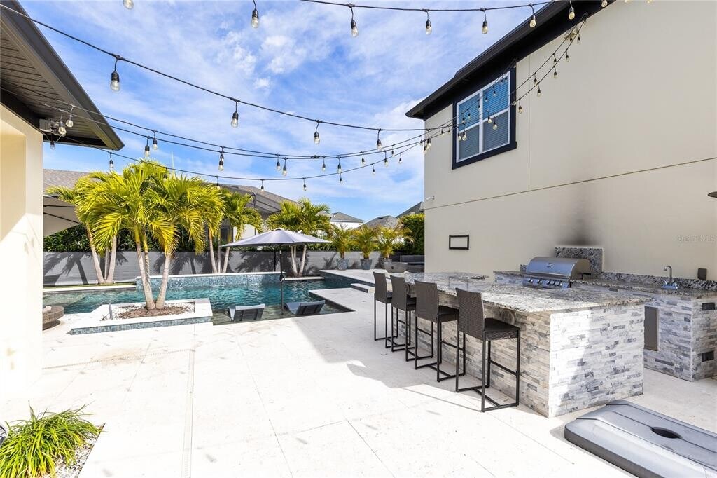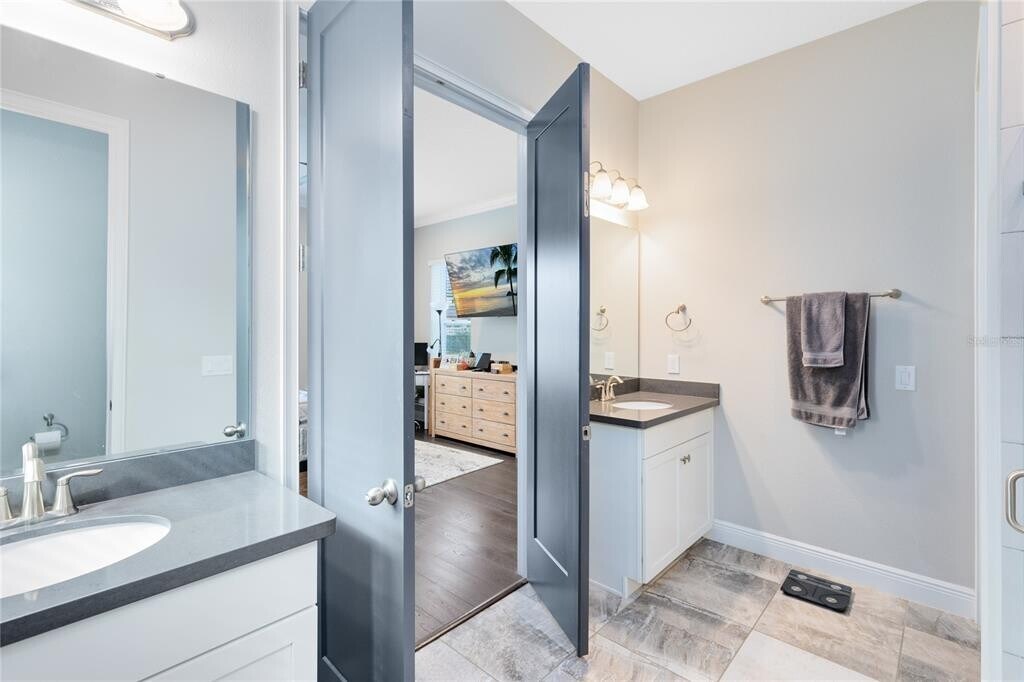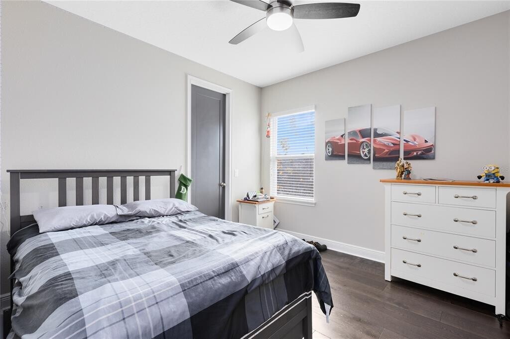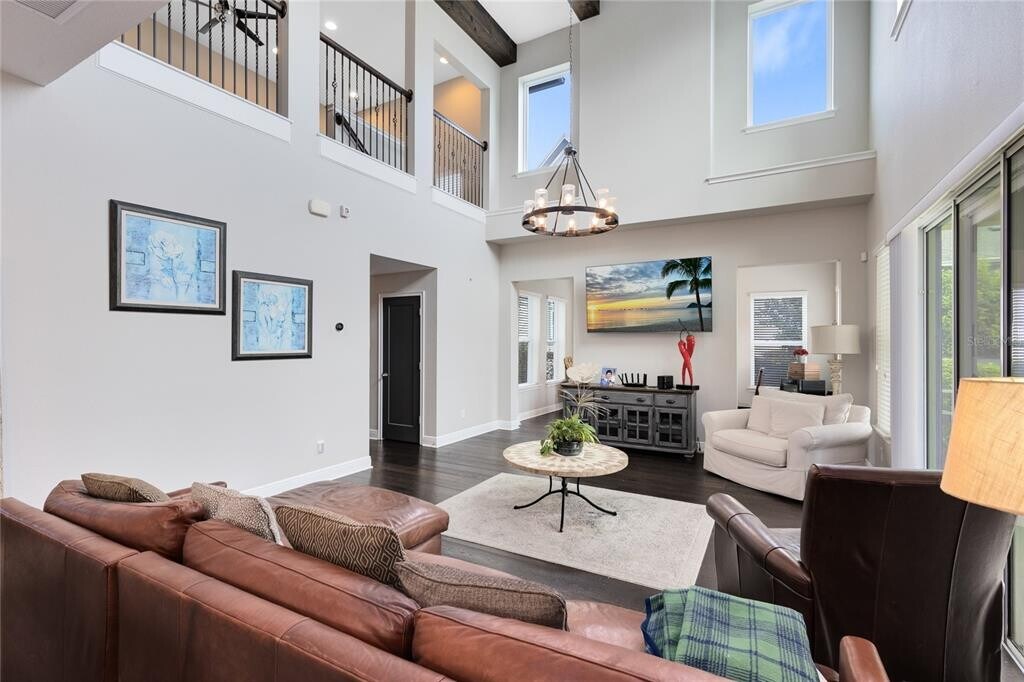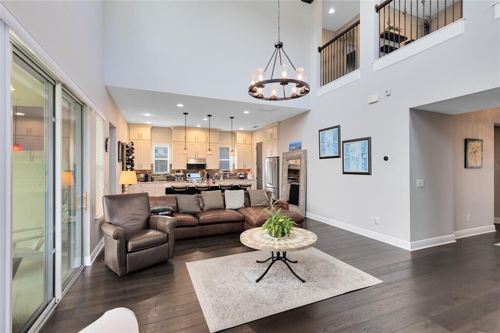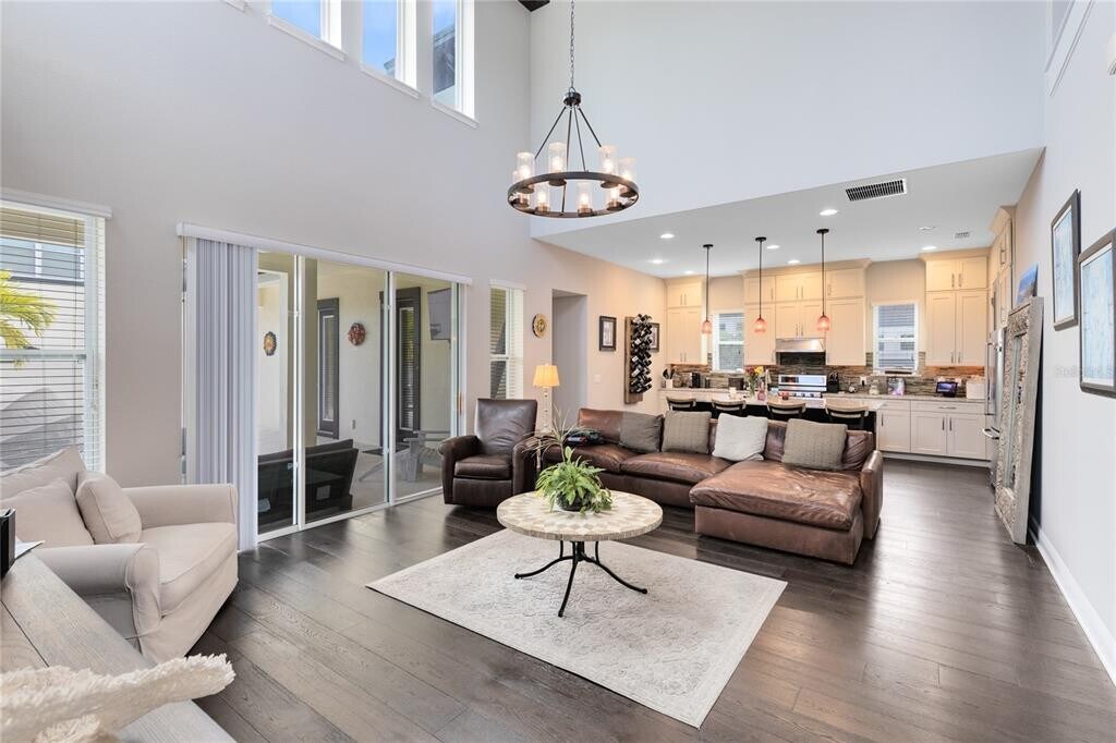 This stunning 4 bedroom,3.5 bath pool home sits on an oversized lot in the heart of Laureate Park in Lake Nona and offers 2,755 square feet of thoughtfully designed living space. Currently owner occupied,the home features a bright open floor plan with soaring two story ceilings,expansive windows,and rich wood flooring throughout the main living areas. The first floor includes a spacious family room that flows seamlessly into the chef inspired kitchen featuring a large island with seating,stone countertops,upgraded cabinetry,stainless steel appliances,built in oven and cooktop,statement pendant lighting,and excellent sightlines for entertaining. Sliding glass doors connect the main living area to the covered patio and an exceptional private backyard retreat. The first floor primary suite offers a peaceful escape with a custom accent wall,crown molding,ceiling fan,and a spa inspired bathroom with dual vanities,stone counters,a large walk in shower with rain shower head,and a walk in closet. Upstairs,a generous loft provides flexible living space ideal for a second family room,media area,or work from home setup and includes access to a private balcony overlooking the front of the home. Three additional bedrooms and two full bathrooms complete the second level. The backyard is designed for resort style living and entertaining,featuring a custom pool with sun shelf and water features,multiple lounge areas,fire pit seating,a covered patio,and a fully equipped outdoor kitchen with stone counters and grill,all surrounded by privacy landscaping and modern hardscape. Additional highlights include a dedicated home office,laundry room,crown molding,high ceilings,solar panels that help offset electric costs at no additional charge to the tenant,and two garage parking spaces within the rare three car garage. Laureate Park isn’t just a neighborhood,it’s a vibrant lifestyle. Enjoy the Aquatic Center,resort style pools,LP Fit gym,and over 44 miles of trails. Located in prime Lake Nona,minutes from Medical City,the VA hospital,Nemours,dining,and shopping,with easy access to Orlando International Airport,major highways,the USTA National Campus,Orlando theme parks,and Florida beaches. MLS# O6376983