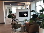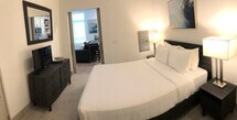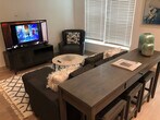 Feel at home in this 1-bedroom apartment in the heart of Ballantyne, Charlotte, NC. This well-appointed and tastefully decorated apartment provides comfort and function. This apartment boasts a 55" flat screen TV and a large and spacious bathroom with a large walk-in shower. The property amenities include a rooftop lounge with expansive indoor/outdoor entertainment, a resort-style saltwater pool with sun shelf, a morning coffee bar, a business center with co-working space and private conference, an indoor spa with heated pool and sauna, an expansive gym with strength, cardio, and cross-training gear, a club room that opens up to the pool plaza, multiple landscaped courtyards with entertainment spaces, a pet spa and private dog park, multiple outdoor kitchens with gas grill stations, keyless fob entry, steam rooms and private massage/meditation room, a private fitness/training room, a resident game lounge and speak easy, private parking in a connected parking garage, a rooftop wine & dine lounge, an expansive outdoor lounge with custom fireplace, poolside cabanas, and wet bars with wine refrigerators. Pets are permitted for a fee of $8.00 per day, not to exceed $300.00. Guests have access to all resort amenities on the property in addition to accessing their sister property. [SI]