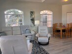 Sleek and modern 2BD/2BA condo in popular Gondola Park. New kitchen with updated appliances and countertops. Beautiful views throughout the unit. Nicely appointed with white leather couch and chairs in living room. Open concept living, dining and kitchen with breakfast bar and with more formal dining table with seating for 6. Vinyl plank/tile floors throughout and lots of windows allowing for a natural light and bright feel to the entire unit. King bed in main bedroom. Double sink, soaker tub and separate shower in main bathroom. Guest bedroom has 2 twin beds and direct access to guest bath. Spacious open-air lanai with panoramic views and is accessible from living room and main bedroom. The community offers many amenities including a community pool, tennis courts and social activities. Three-month minimum rental is required by the Association.